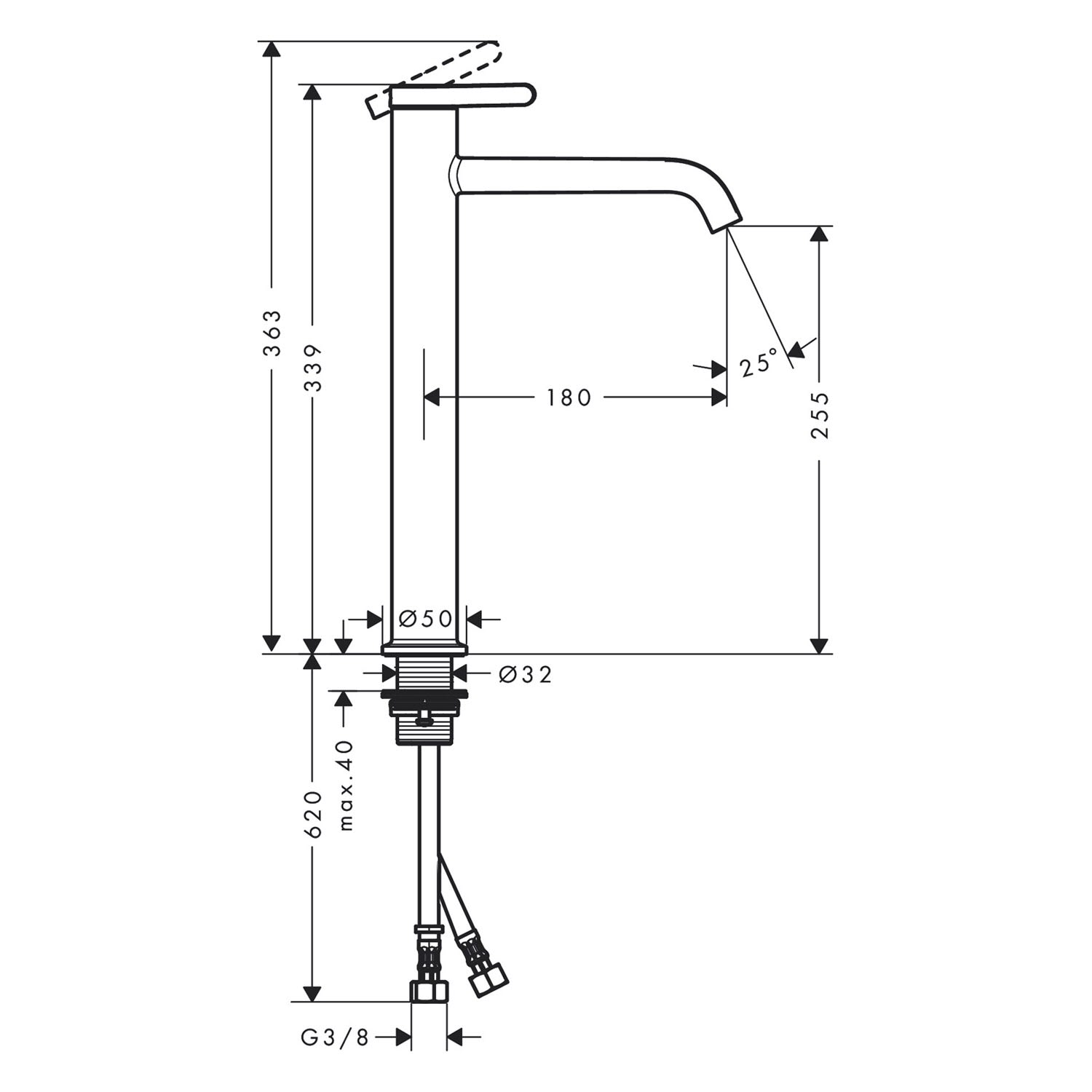 - Anschlussart: G 3/8 Anschlussschläuche