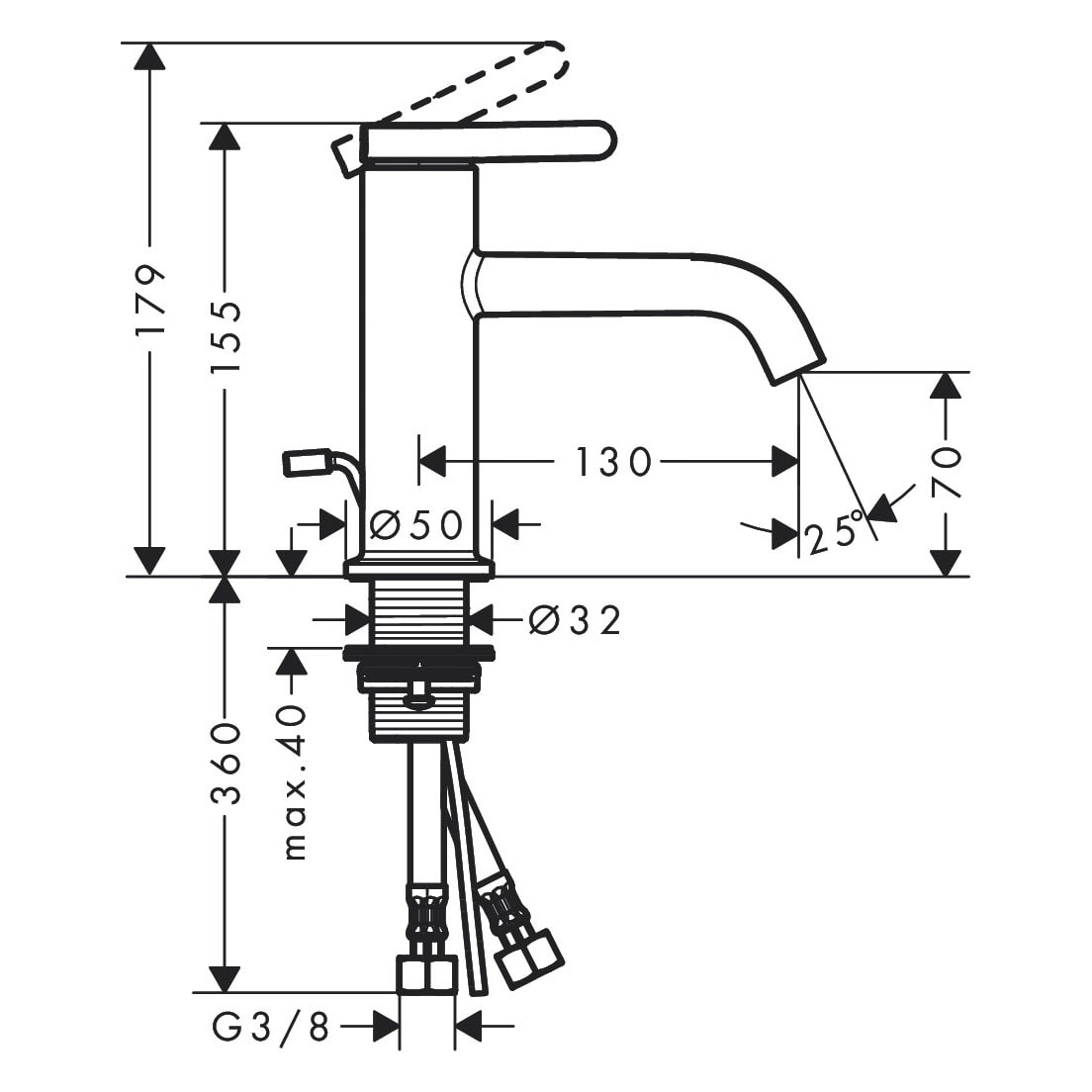 AXOR One Einhebel-Waschtischmischer 70 mit Hebelgriff und Zugstangen-Ablaufgarnitur