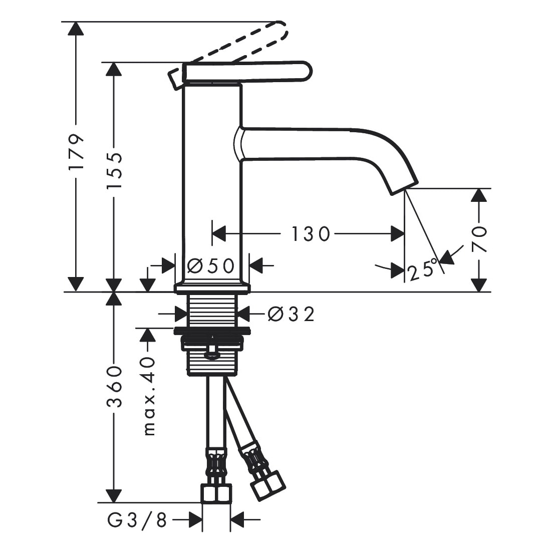 AXOR One Einhebel-Waschtischmischer 70 mit Hebelgriff und Ablaufgarnitur