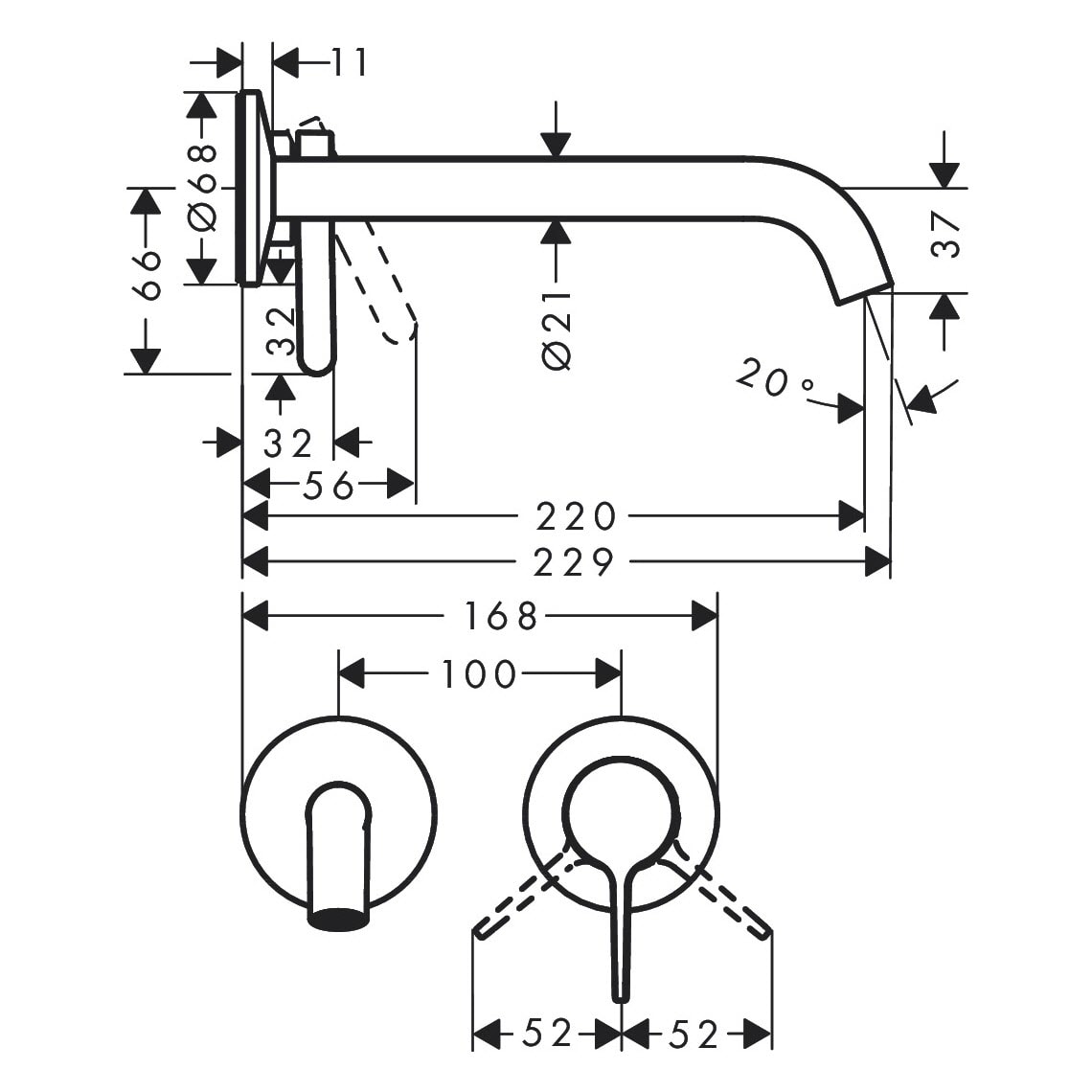 AXOR One Einhebel-Waschtischmischer UP für Wandmontage mit Hebelgriff und Auslauf 220