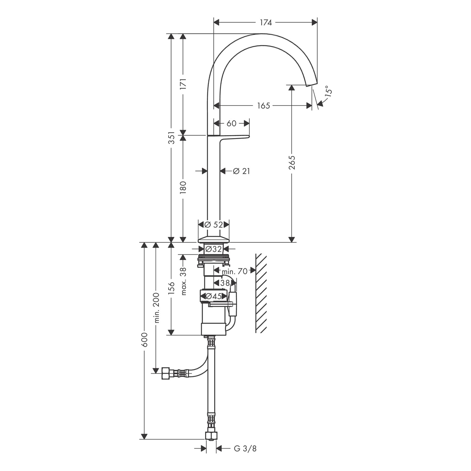 - Anschlussart: G 3/8 Anschlussschläuche