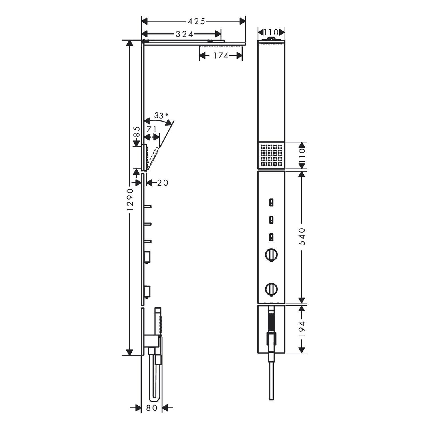 AXOR ShowerComposition Duschpaneel mit Thermostat, Duschkopf 110/220 1 Strahlart und Schulterbrause