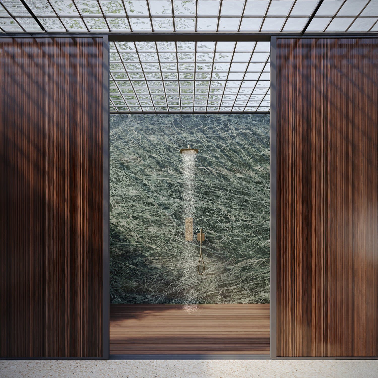 - Select-Tasten werden mit gelaserten Verbraucher Symbolen geliefert (Rain groß und Handbrause)