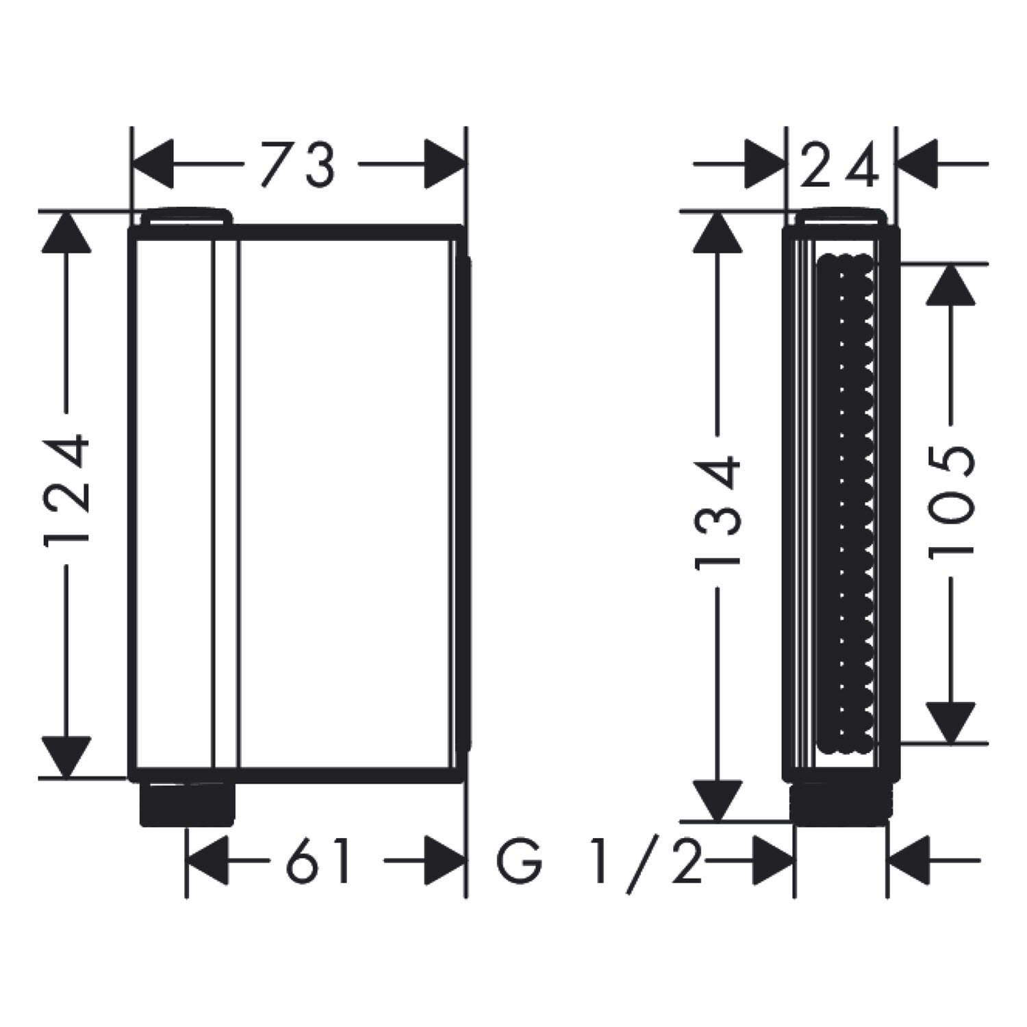 - Brausekopfgröße: 124 x 24 mm