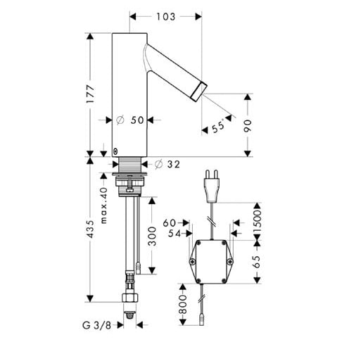AXOR Starck Elektronik-Waschtischmischer, Netzanschluß, DN15