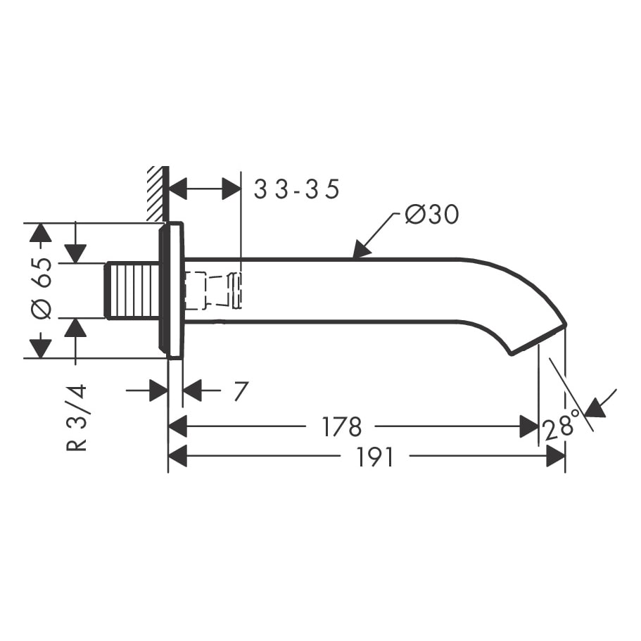 AXOR Uno Wanneneinlauf mit gebogenem Auslauf