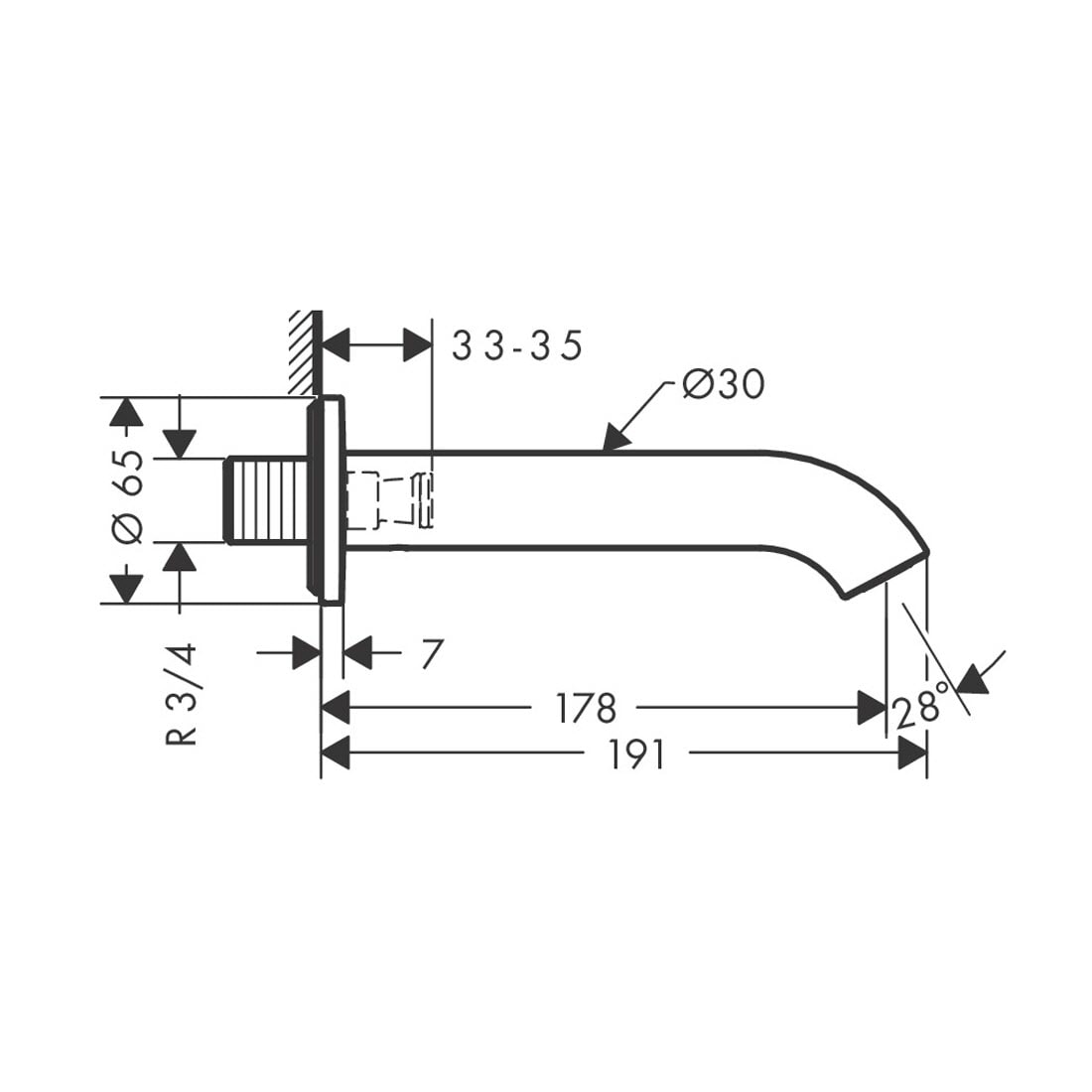 AXOR Uno Wanneneinlauf mit gebogenem Auslauf