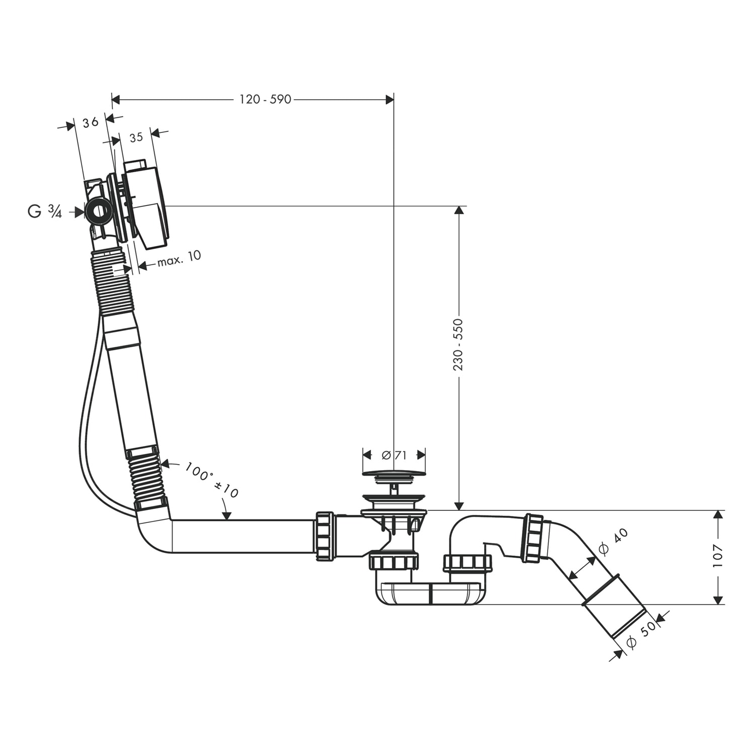 AXOR Exafill S Wannenein-, Ab-und Überlaufgarnitur Komplettset für Sonderwannen