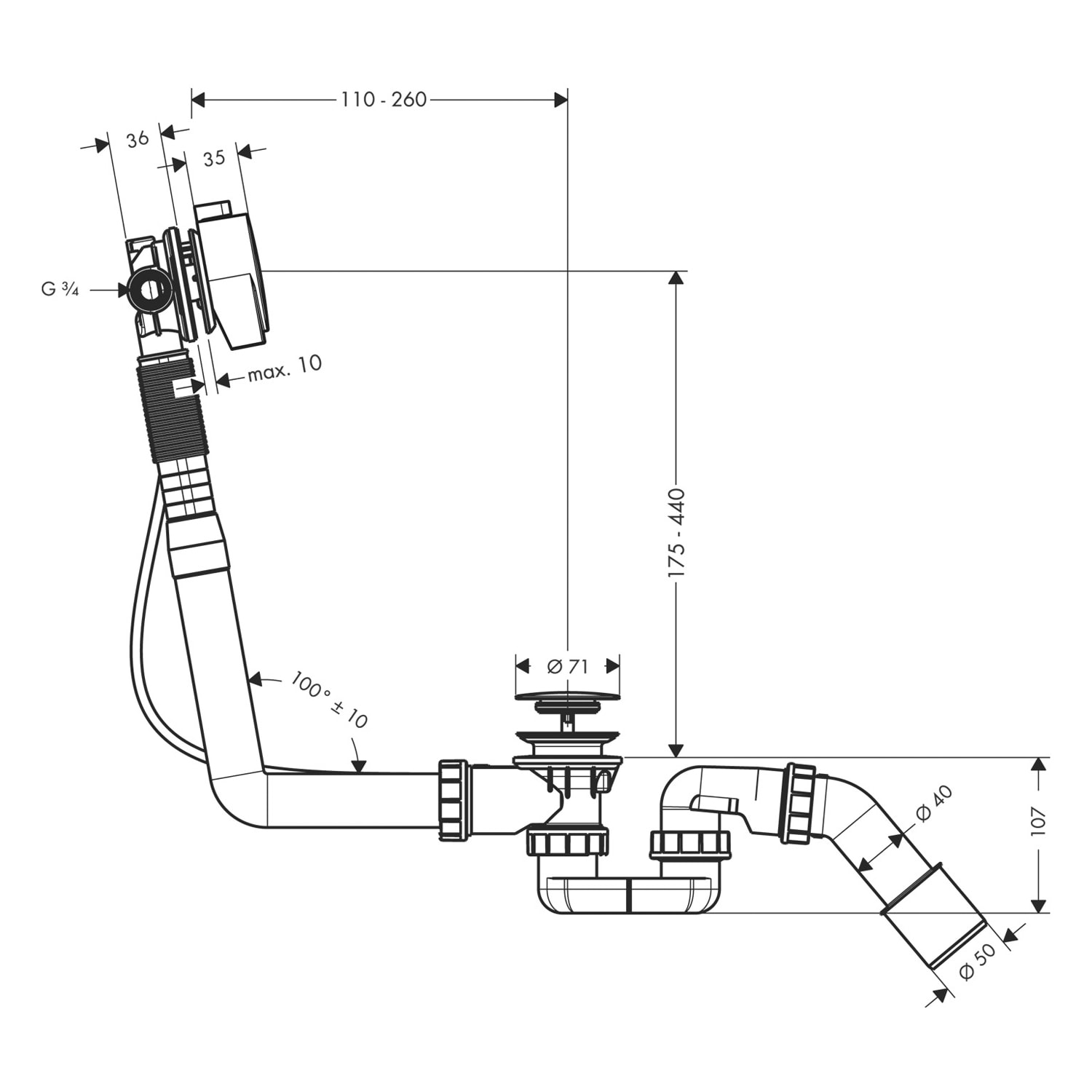 AXOR Komplettset Wanneneinlauf, Ablauf- und Überlaufgarnitur für Normalwannen
