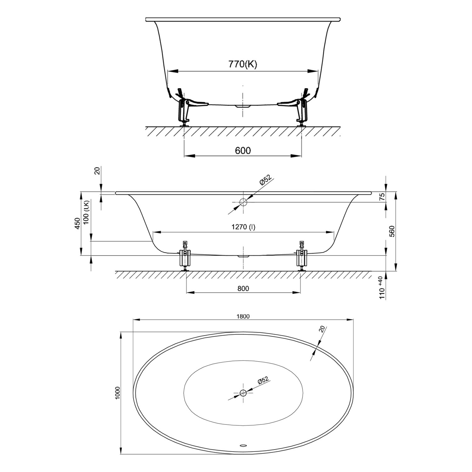 BetteEve Oval Badewanne 180 x 100 cm
