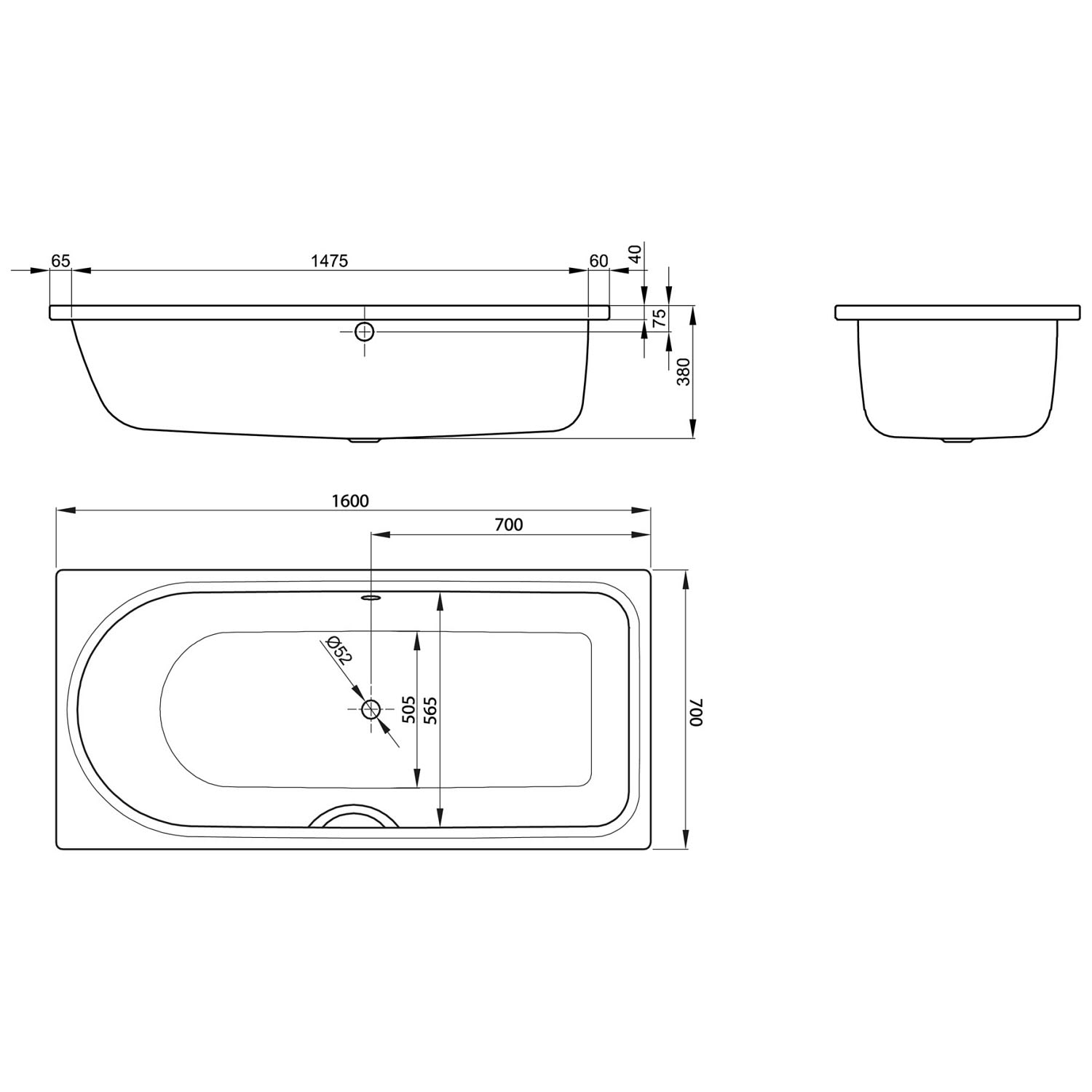 - Stahlbadewanne mit schmalem Rand und den Maßen 160 x 70 x 38 cm für ca. 120 Liter Wasser nebst einem Badenden