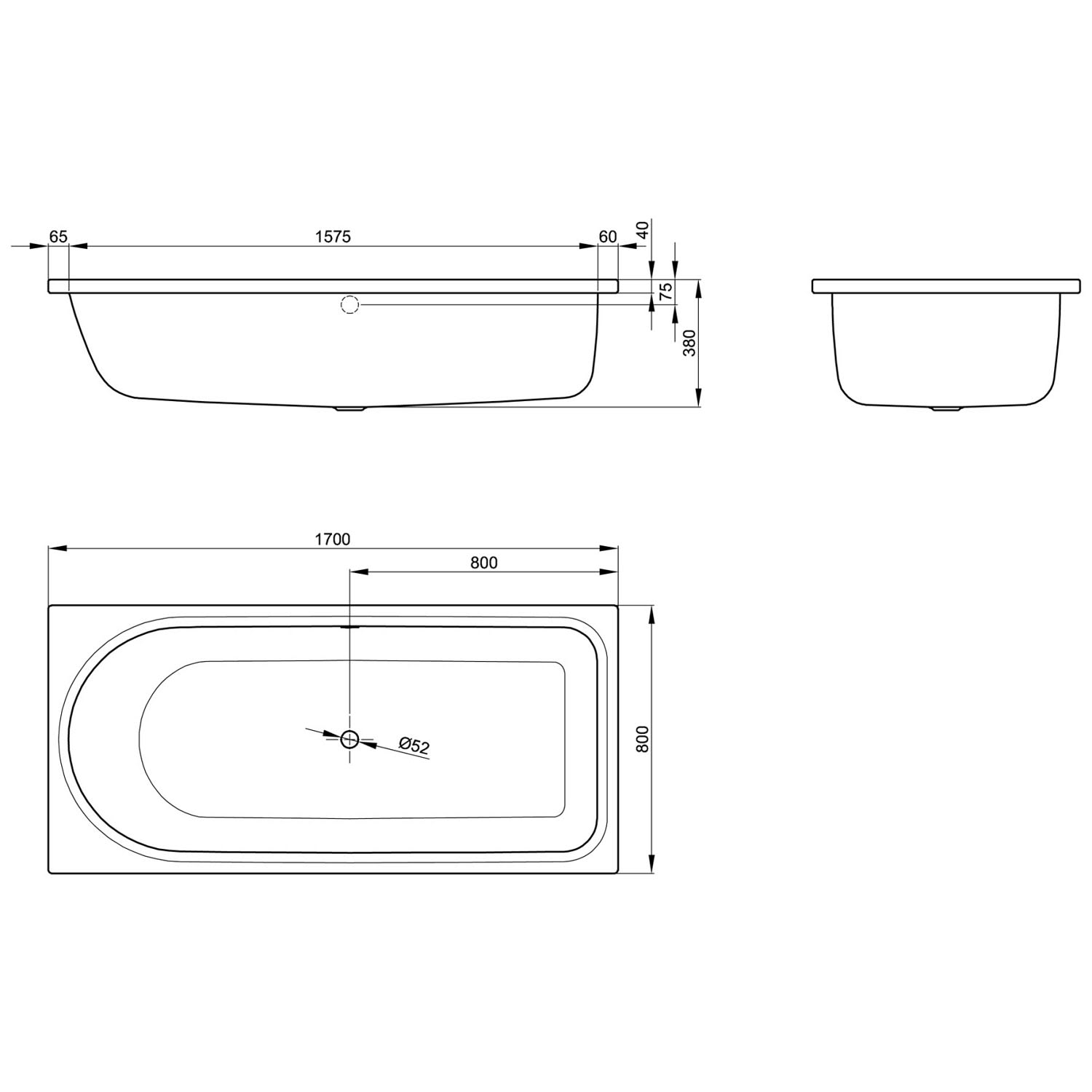 Bette BetteOcean Lowline 170 x 80 cm, Überlauf hinten