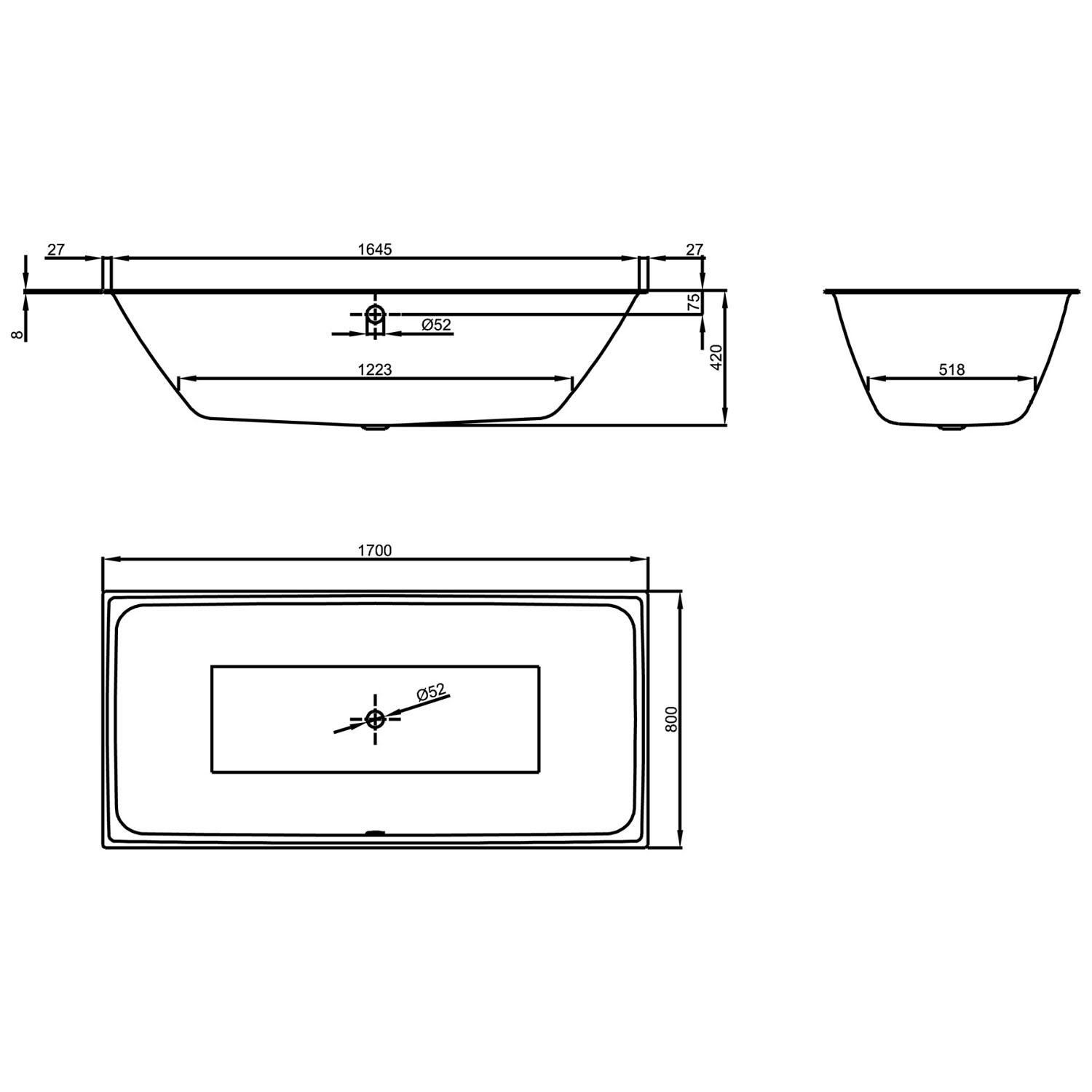 - Ablaufloch Ø 5,2 cm