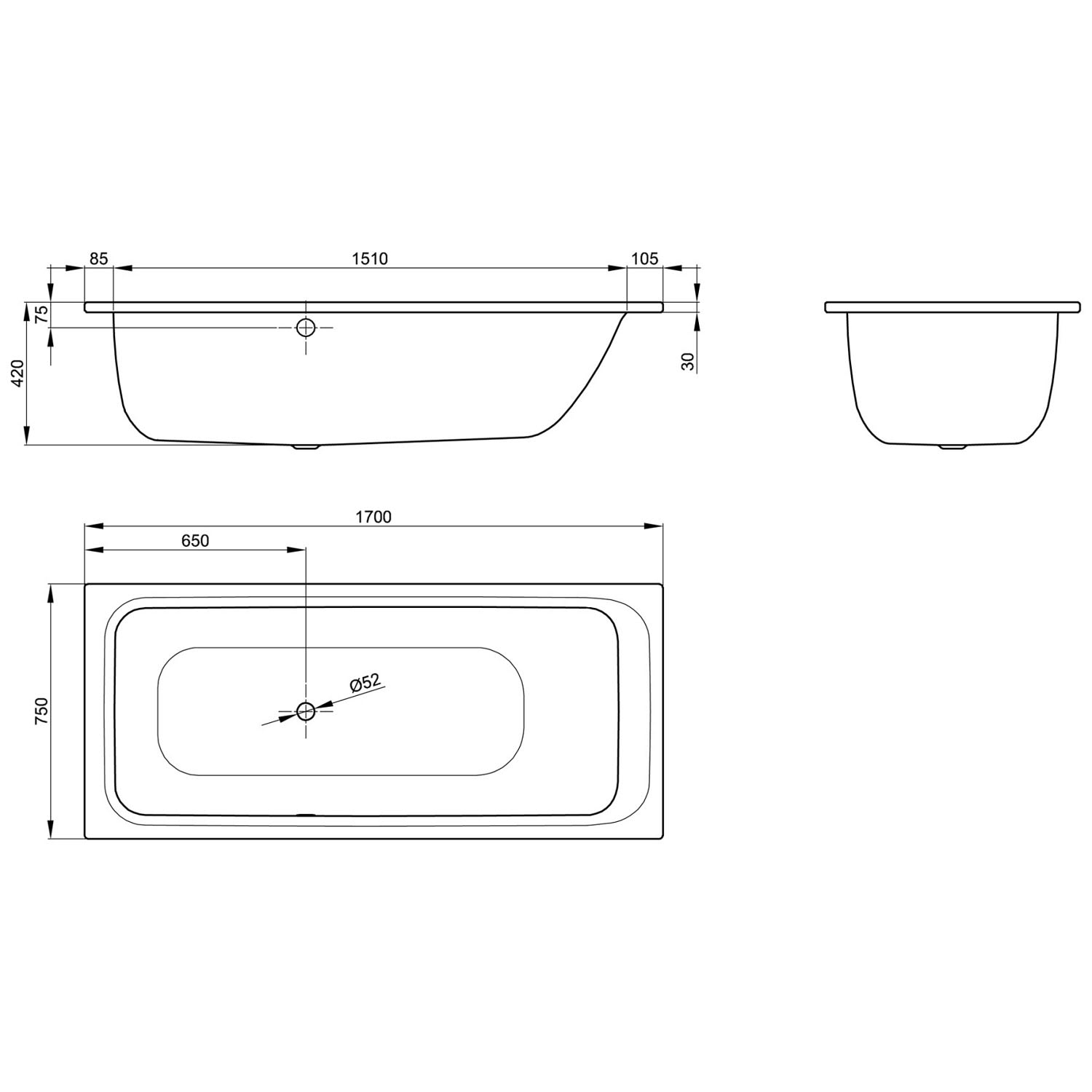 Bette Select Einbauwanne 170 x 75 x 42 cm Überlauf hinten