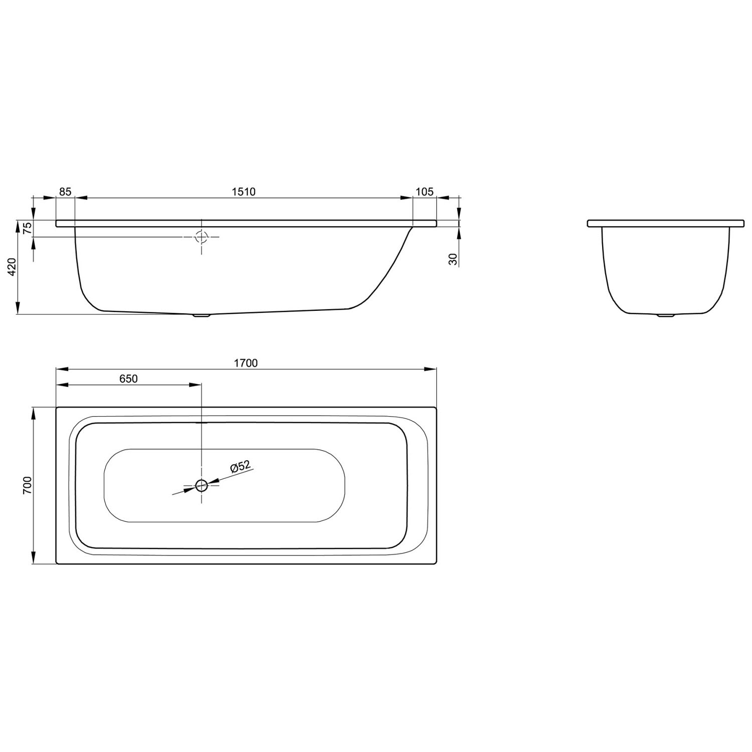 Bette Select Einbauwanne 170 x 70 x 42 cm Überlauf vorne