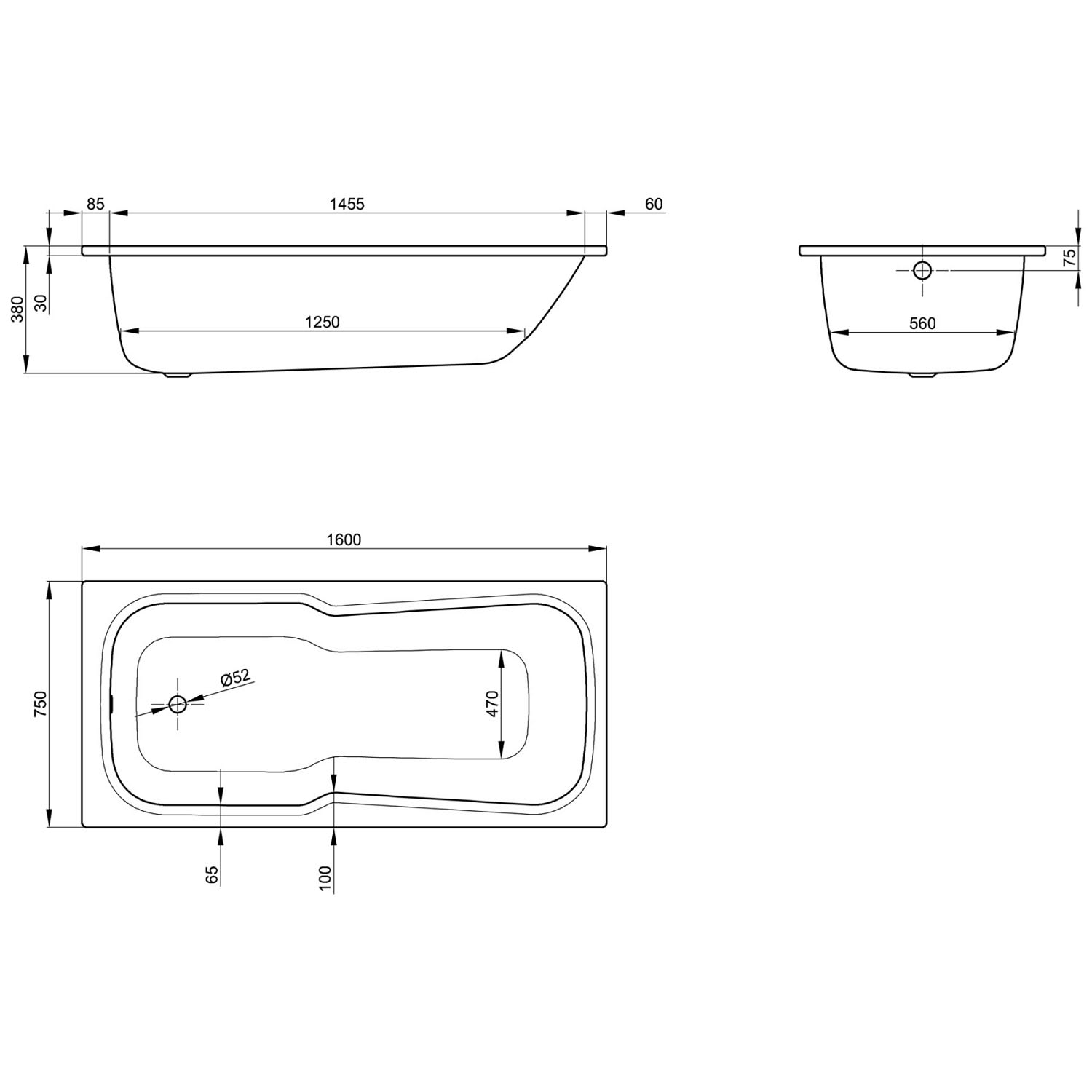 Bette Set Badewanne 160 x 75 x 38 cm