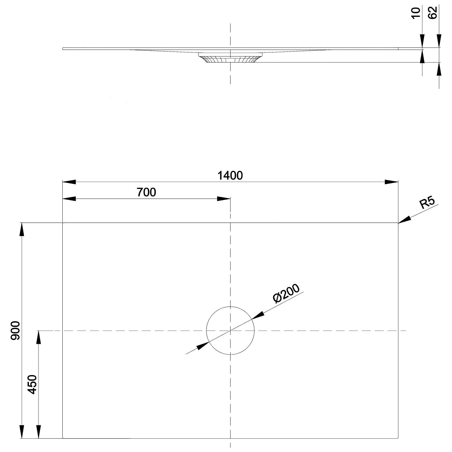 - Ablaufloch Ø 20 cm