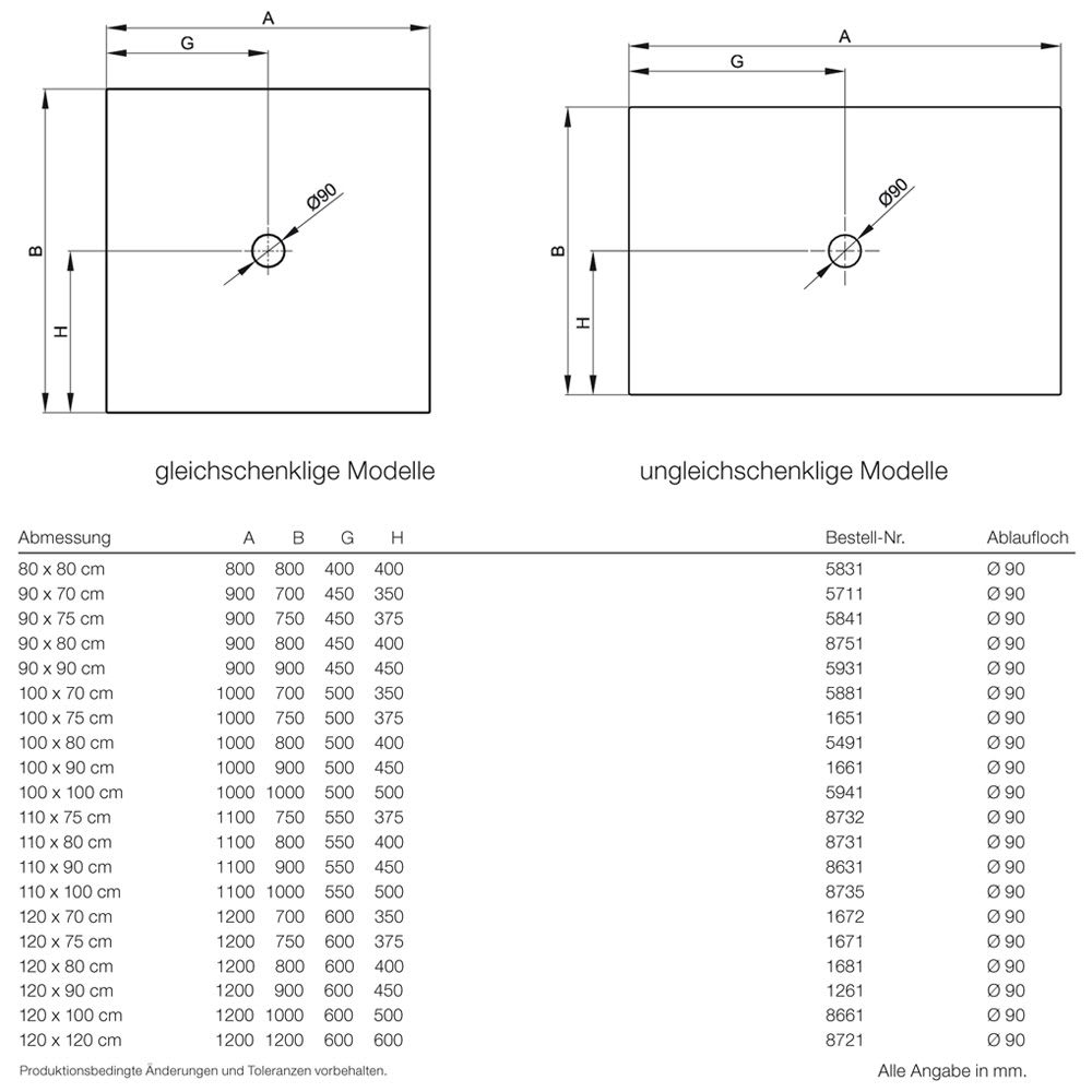 - mit Ablaufloch Ø 9 cm mittig platziert