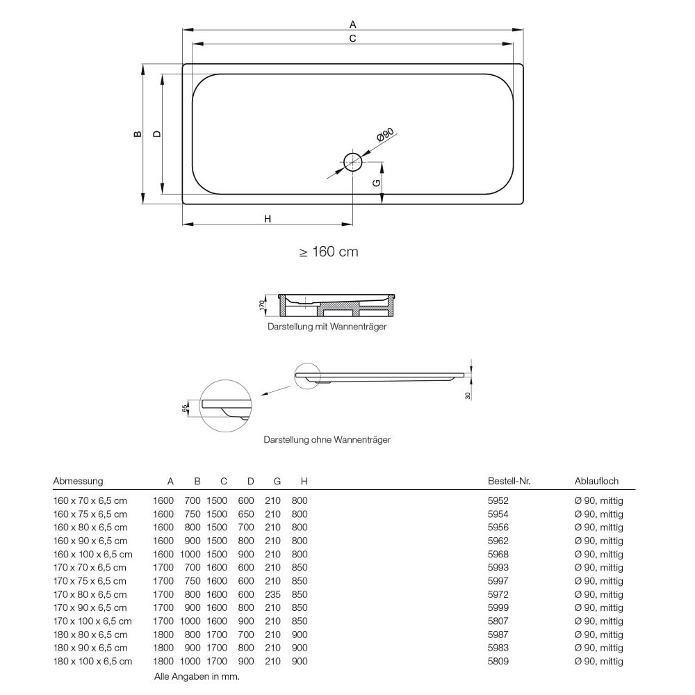 ohne Wannenträger