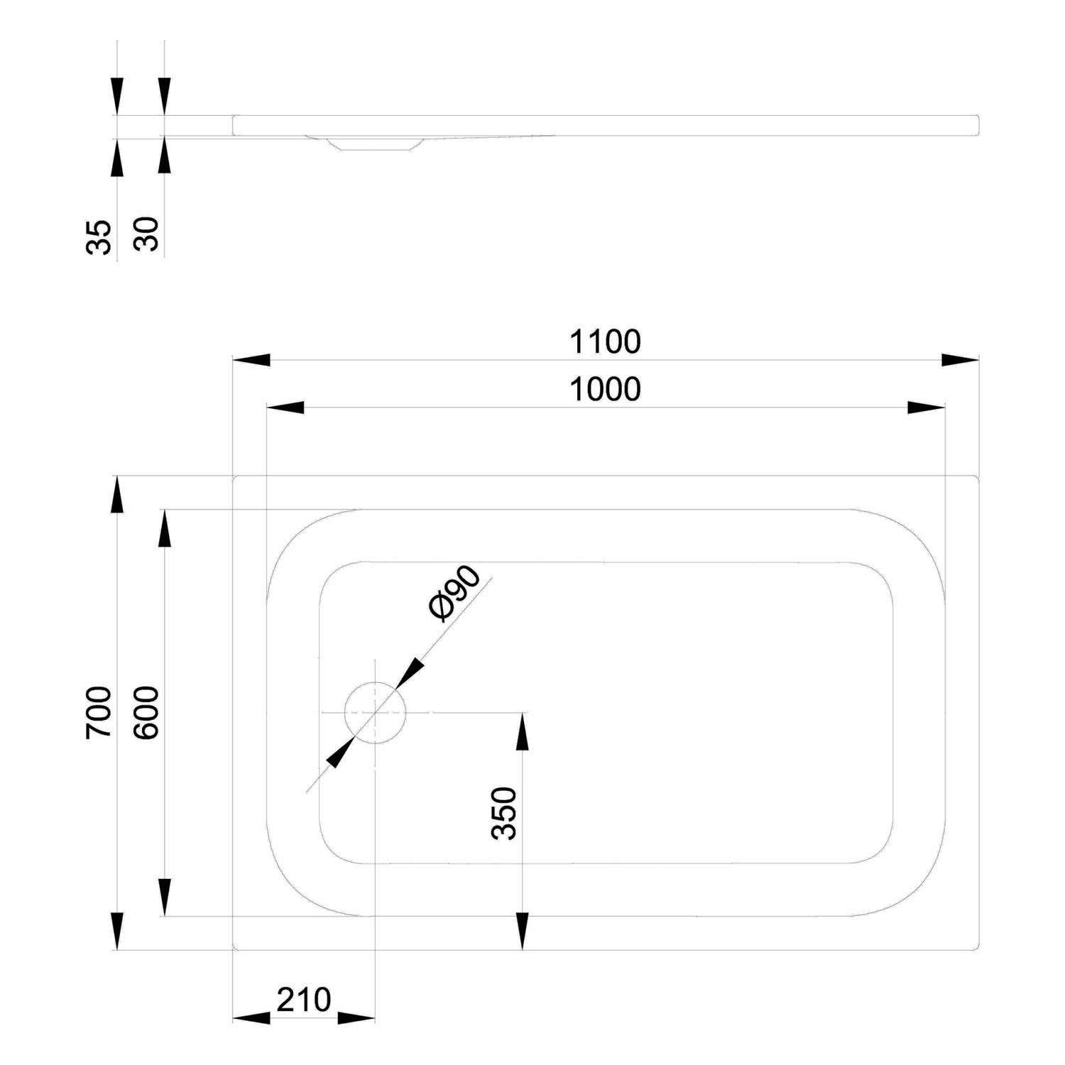 Bette Ultra Duschwanne superflach 110 x 70 x 3,5 cm mit BetteGlasur® Plus
