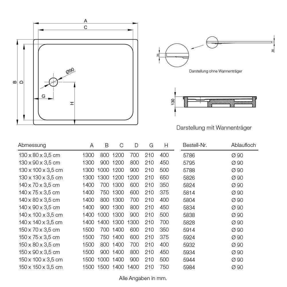 Bette Ultra Duschwanne superflach 140 x 80 x 3,5 cm mit BetteAntirutsch Sense