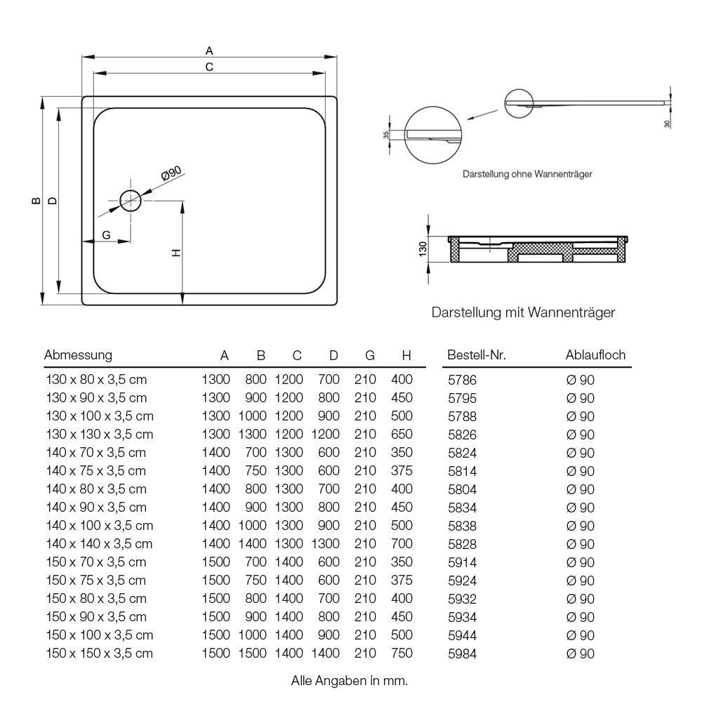 - Ablaufloch Ø 9 cm