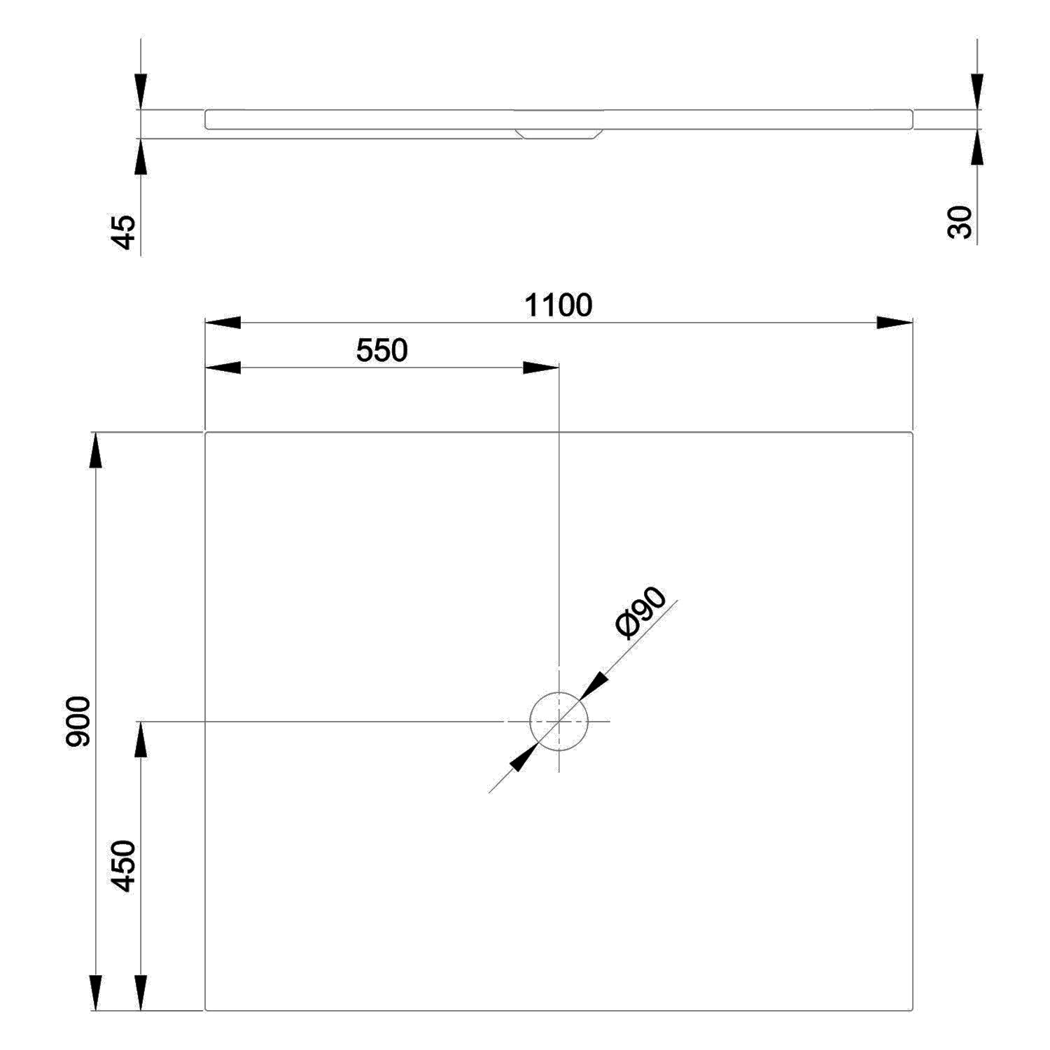 - mit Ablaufloch Ø 9 cm mittig platziert
