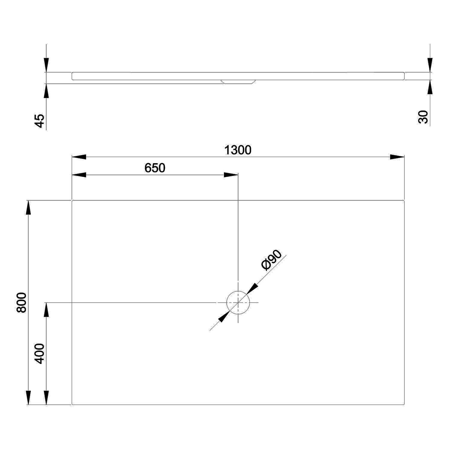 - mit Ablaufloch Ø 9 cm mittig platziert
