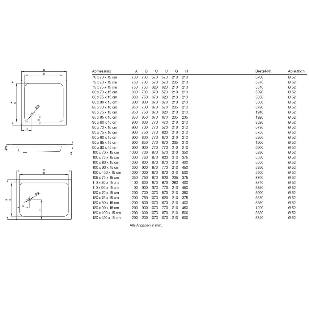 - Serienmodell der Viereckduschwanne in flacher Ausführung