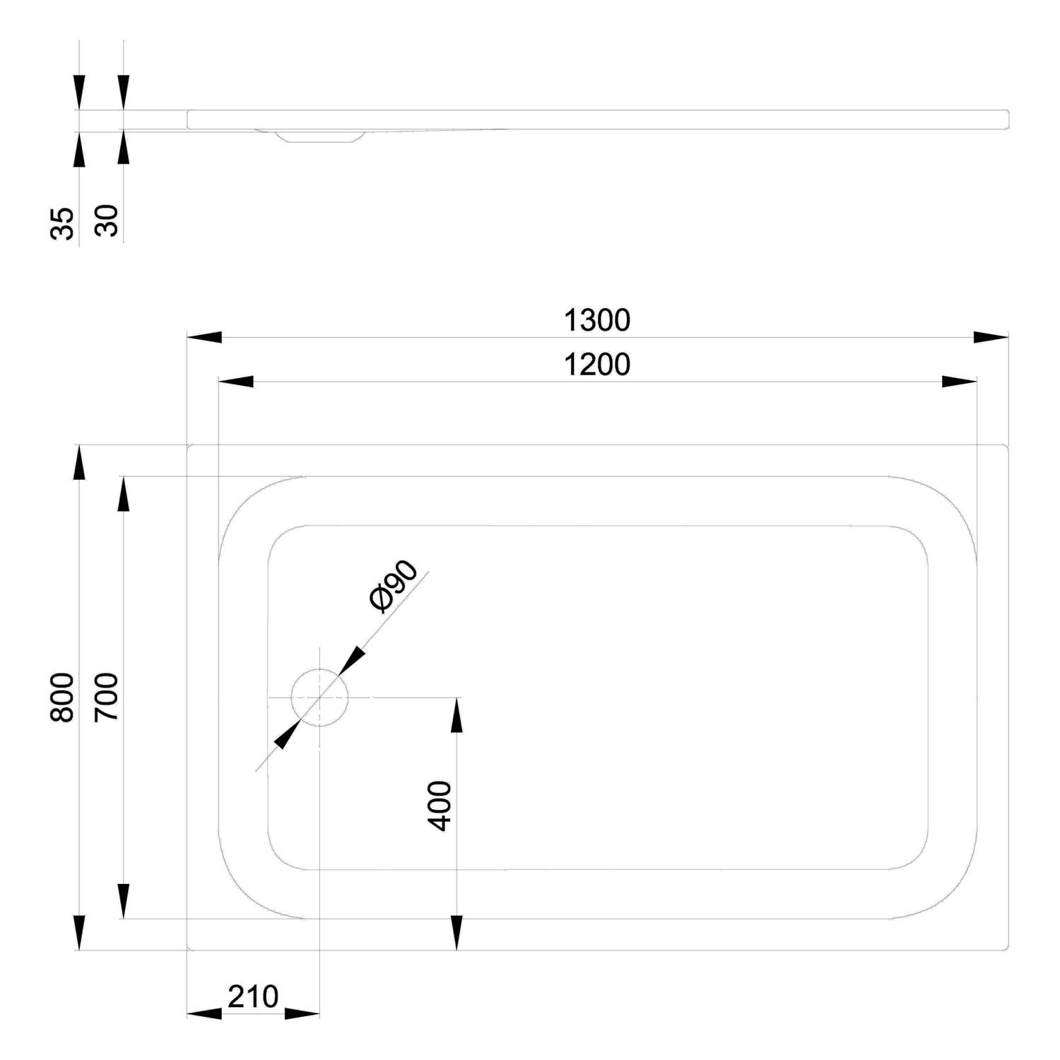 Bette Ultra Duschwanne superflach 130 x 80 x 3,5 cm mit BetteGlasur® Plus