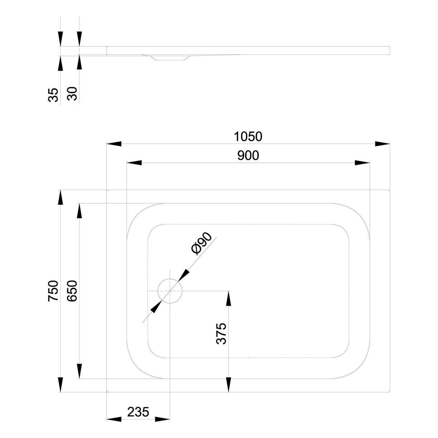 Bette Ultra Duschwanne superflach 105 x 75 x 3,5 cm