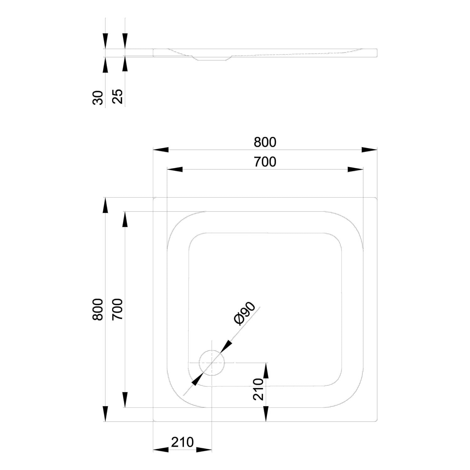 - Ablaufloch Ø 9 cm