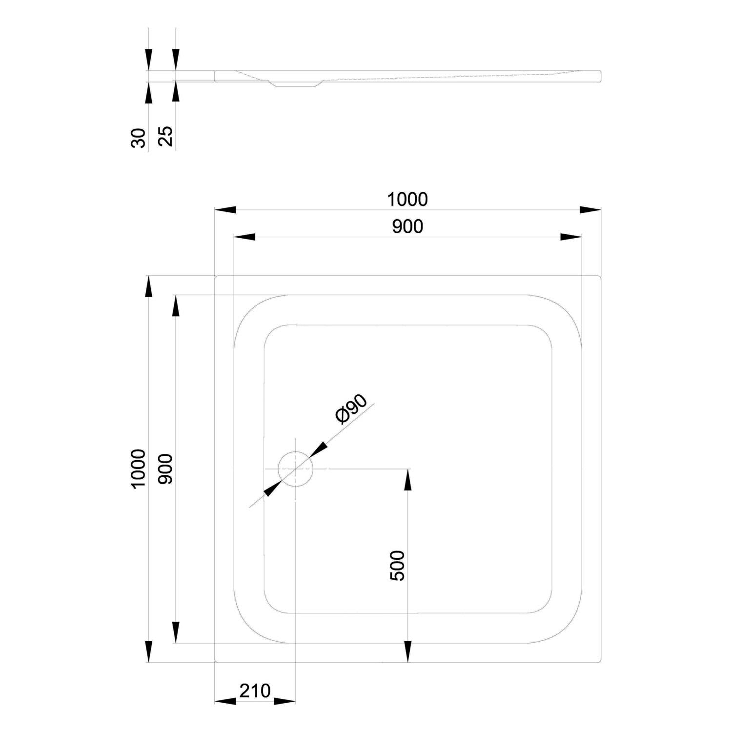 Bette Ultra Duschwanne superflach 100 x 100 x 2,5 cm mit BetteAntirutsch Sense