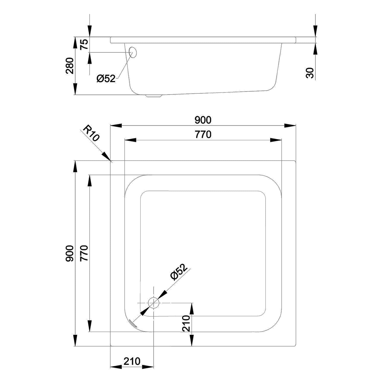 Bette Delta Duschwanne tief 90 x 90 x 28 cm