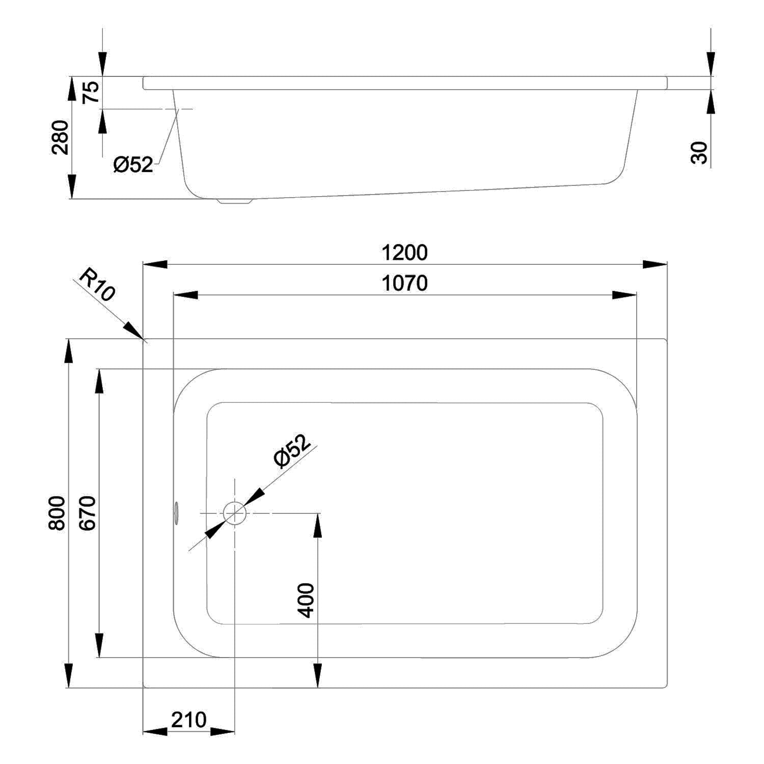 Bette Delta Duschwanne tief 120 x 80 x 28 cm