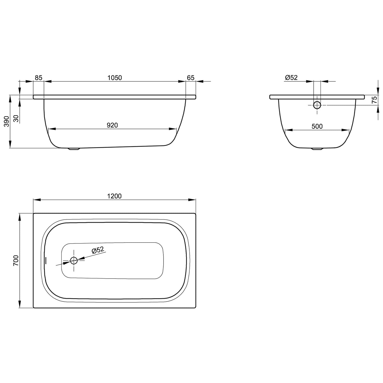 - Sitz-Badewanne aus Stahl-Email
