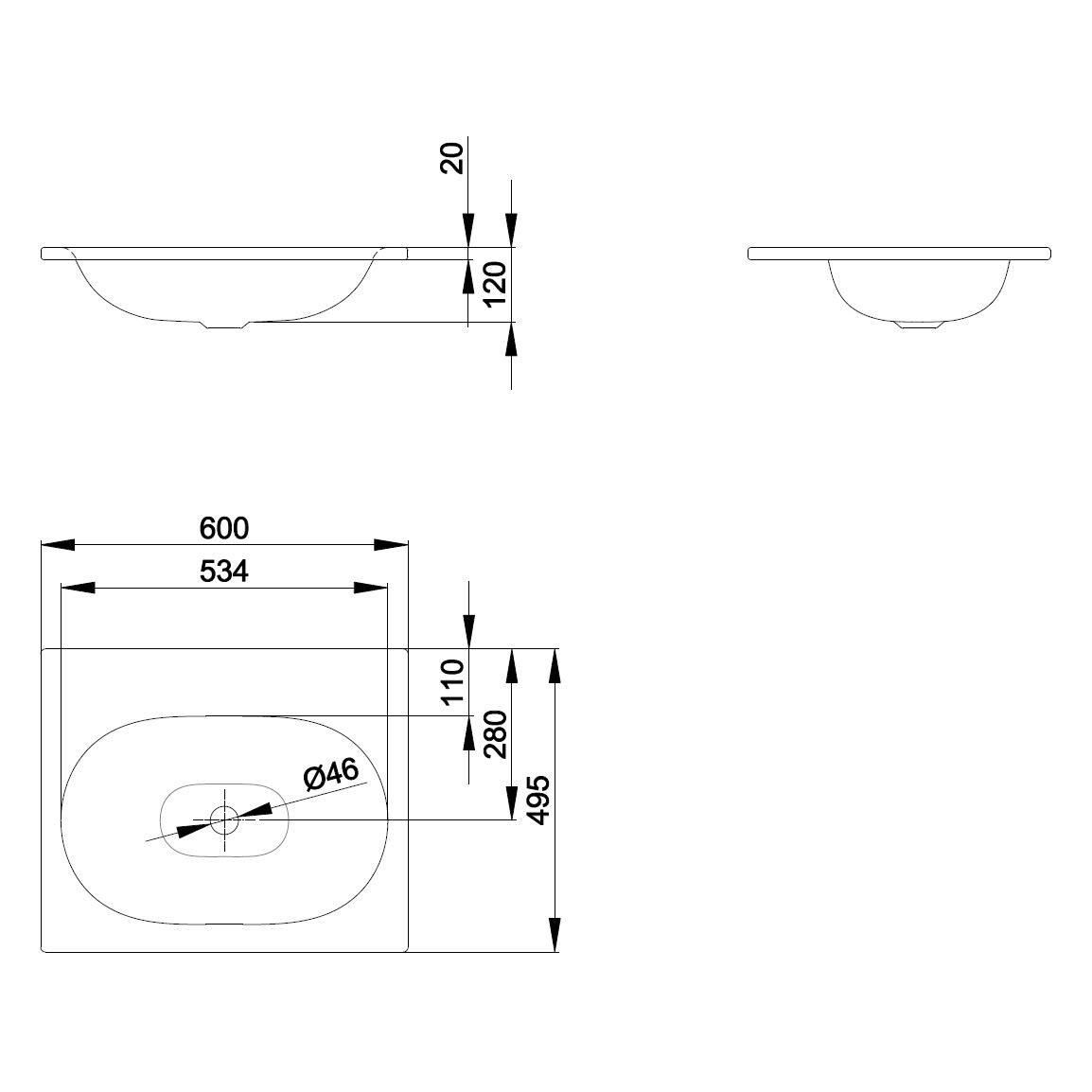 BetteComodo Einbau-Waschtisch 60 x 49,5 cm ohne Hahnloch