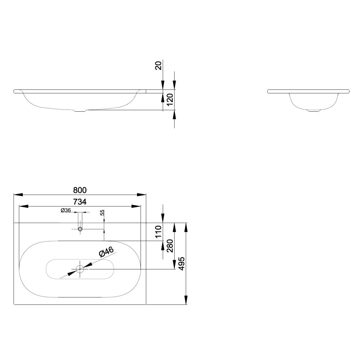 - Ablaufdurchmesser: 4,6 cm