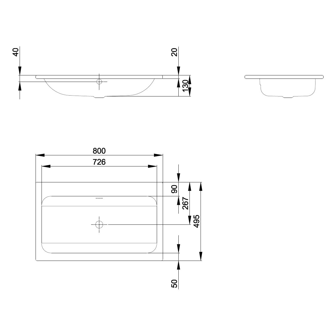 BetteOne Einbau-Waschtisch 80 x 49,5 cm ohne Hahnloch