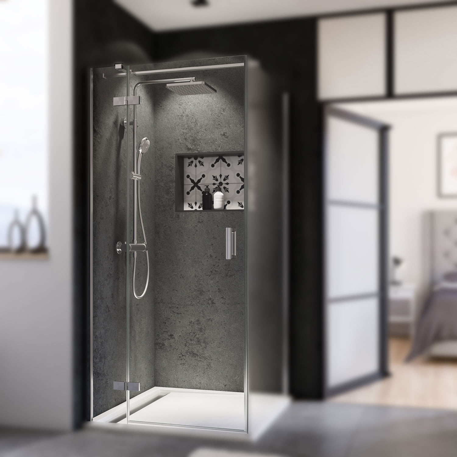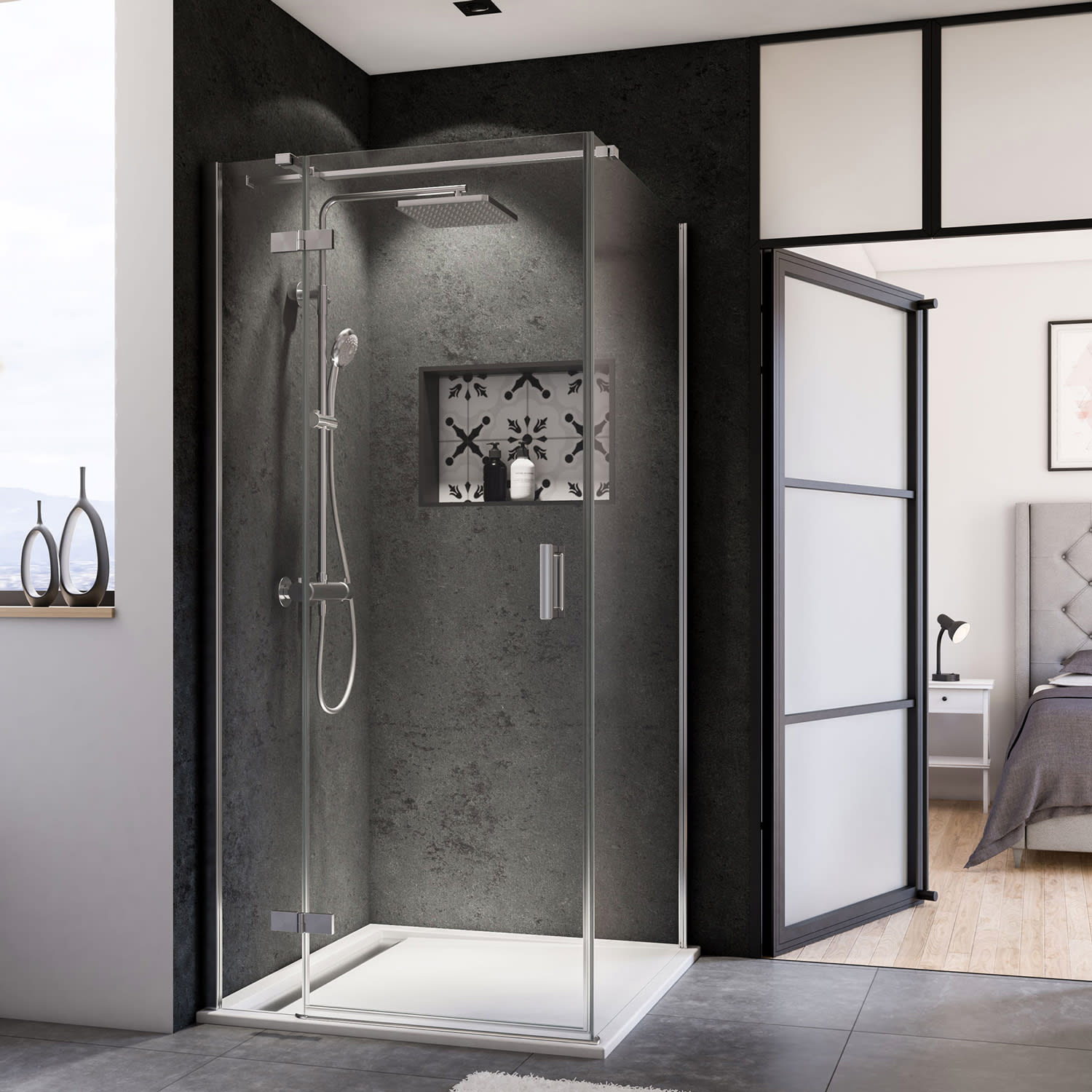 Breuer Panorama Drehtür mit Festteil für Seitenwand 90 cm, Anschlag links