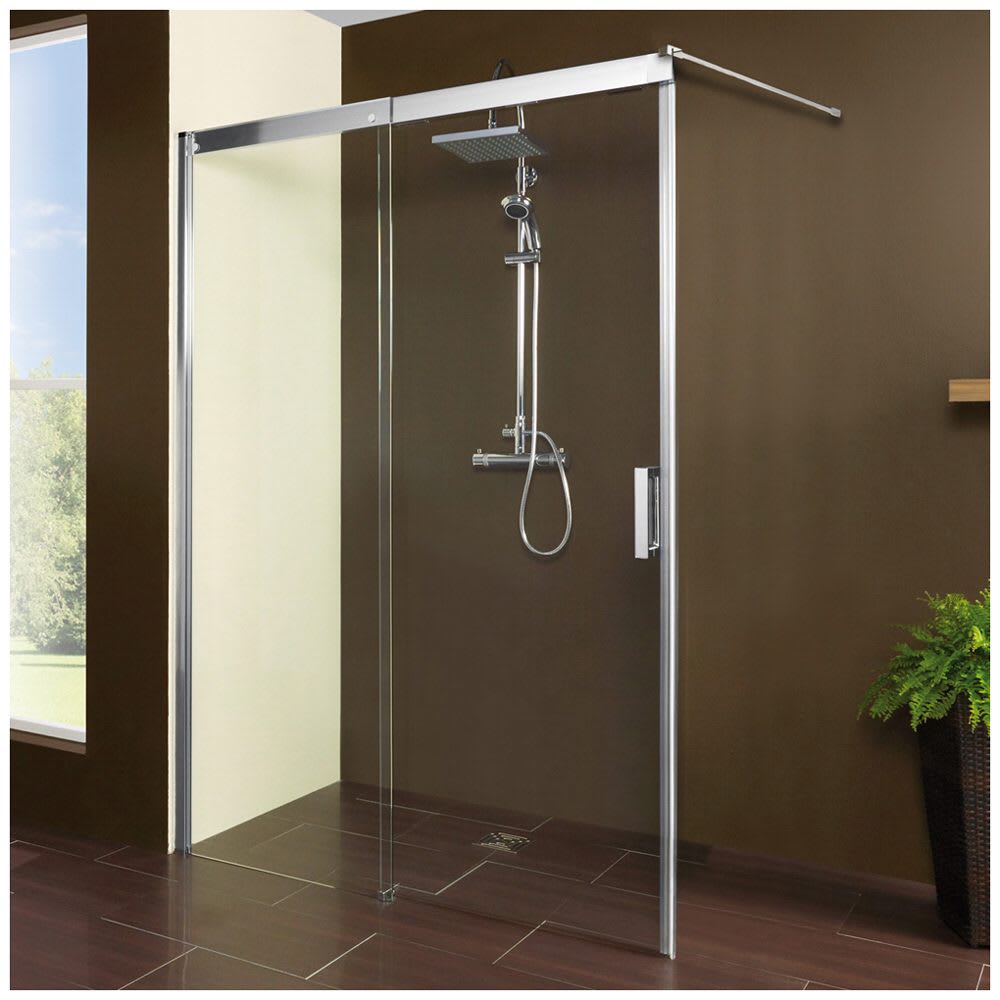 - mit hochwertigem Einscheiben-Sicherheitsglas (ESG) Glasstärke Schiebetür 6 mm, Festteil 8 mm
