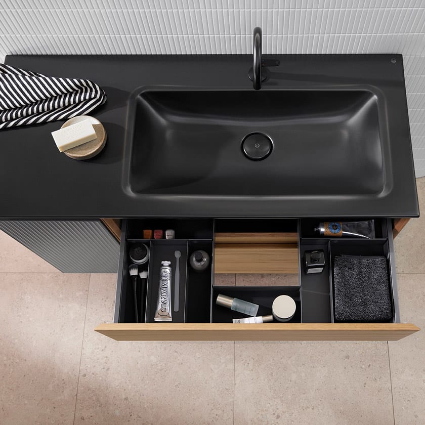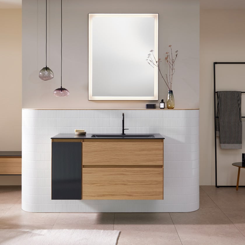 burgbad Accura Waschtischunterschrank 111,7 cm mit Keramik-Waschtisch rechts