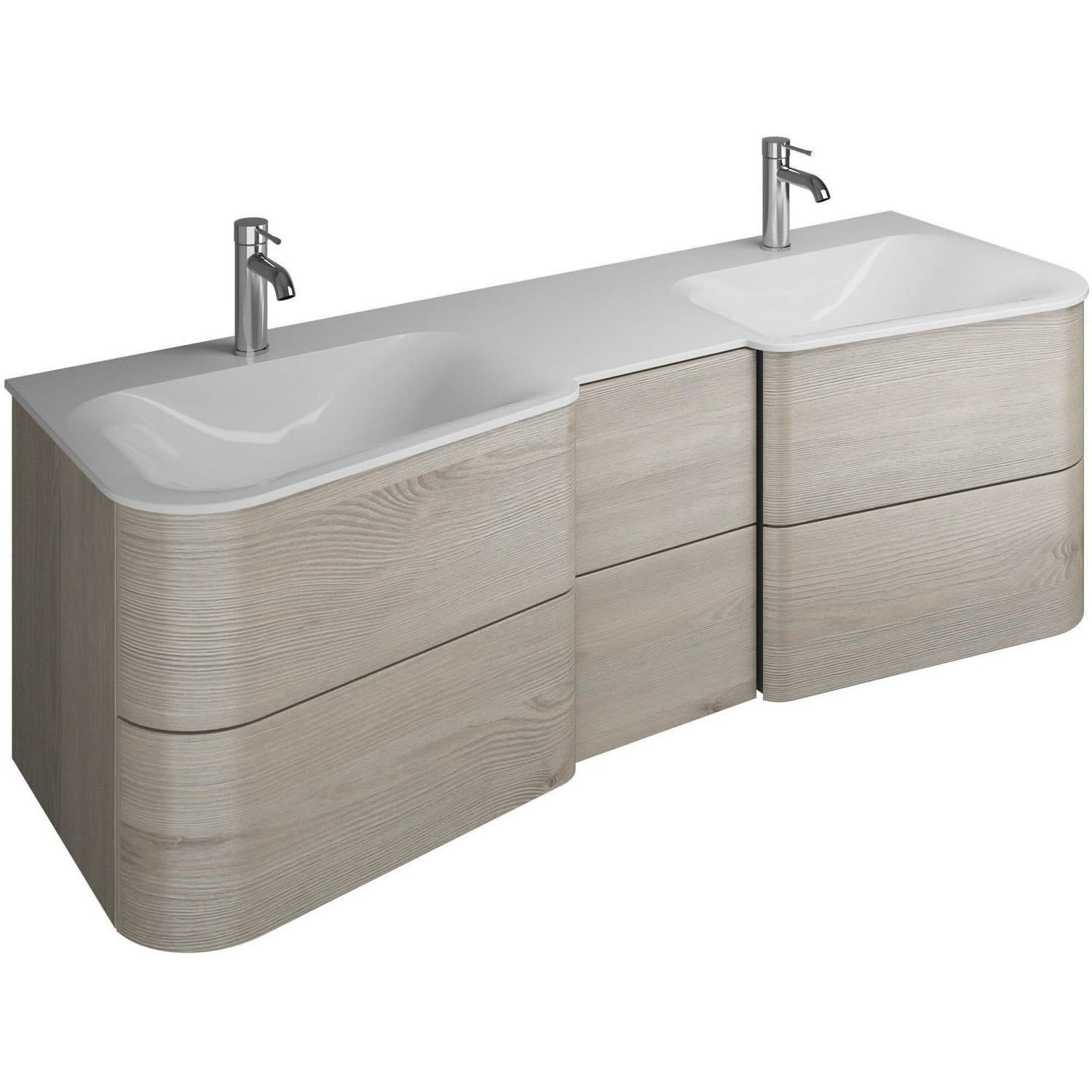 burgbad Badu Mineralguss-Waschtisch ohne Hahnloch bohrung inkl. Waschtischunterschrank 152 cm, 2 Schubladen mittig