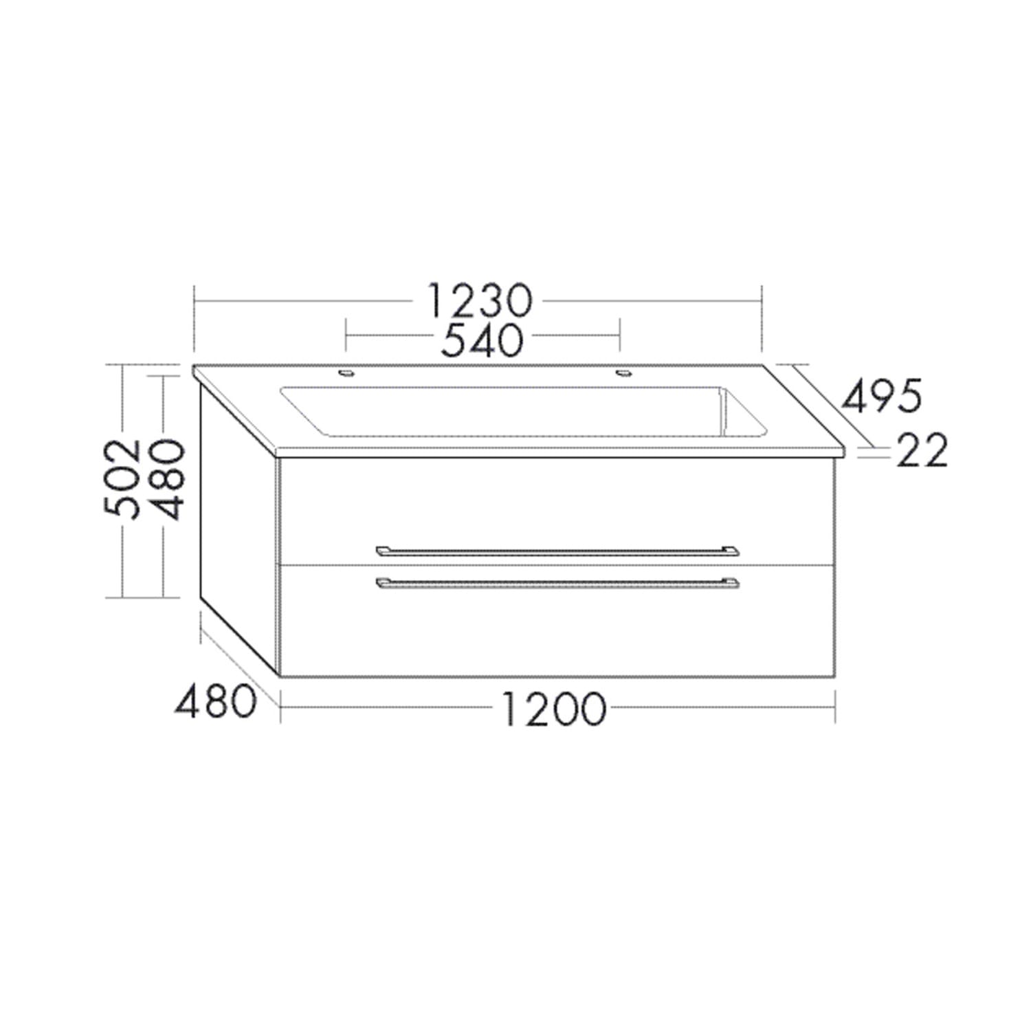 burgbad Bel Keramik-Waschtisch mit Waschtischunterschrank 83 x 49,5 cm, 2 Auszüge, Griffmulde
