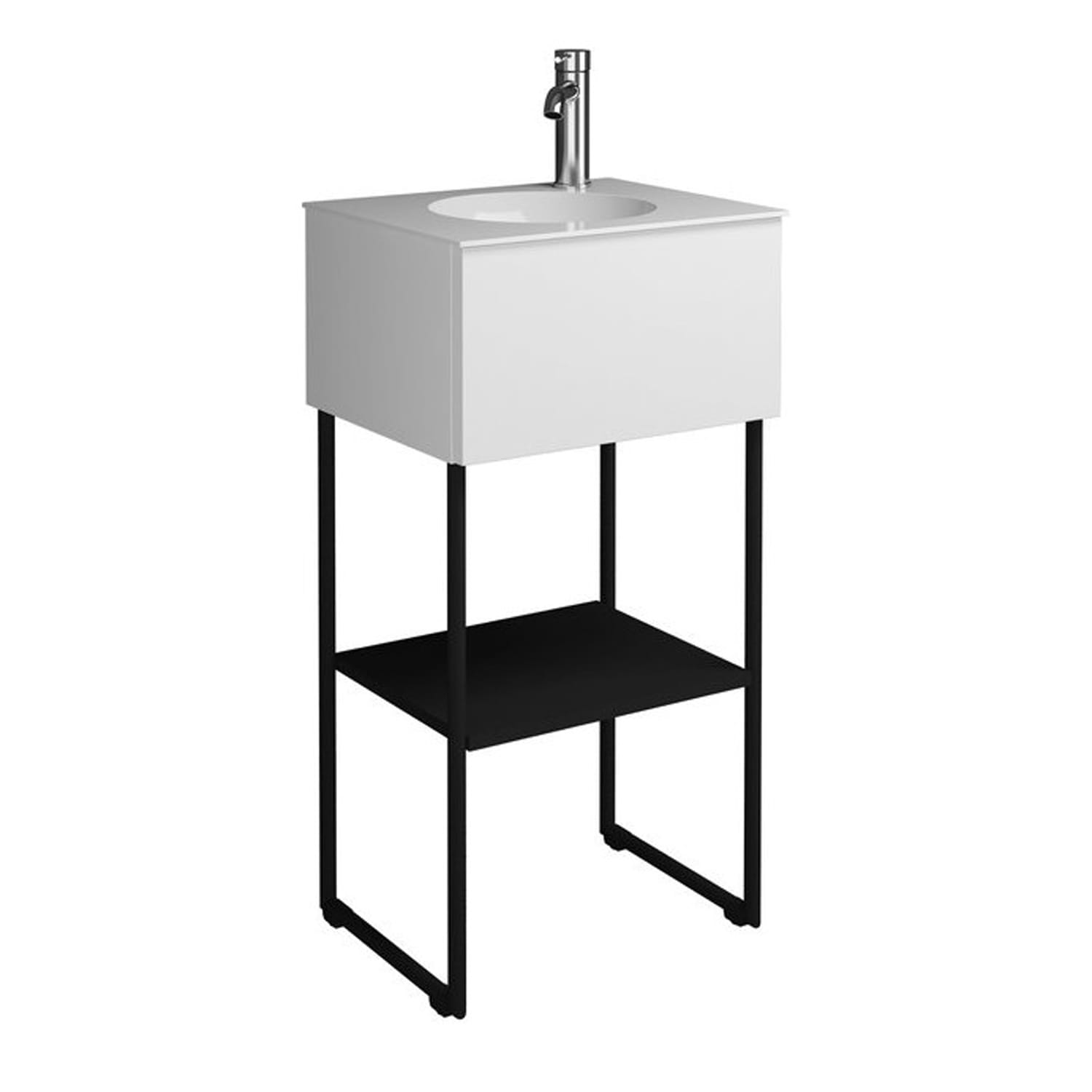 burgbad Coco Gäste Bad Mineralguss-Waschtisch mit Waschtischunterbau und Fußgestell
