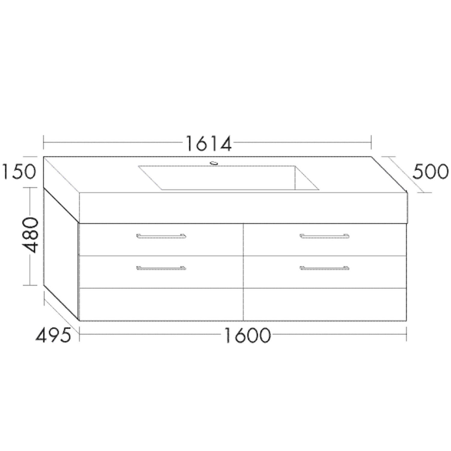 B: 161,4 T: 50 H: 63 cm