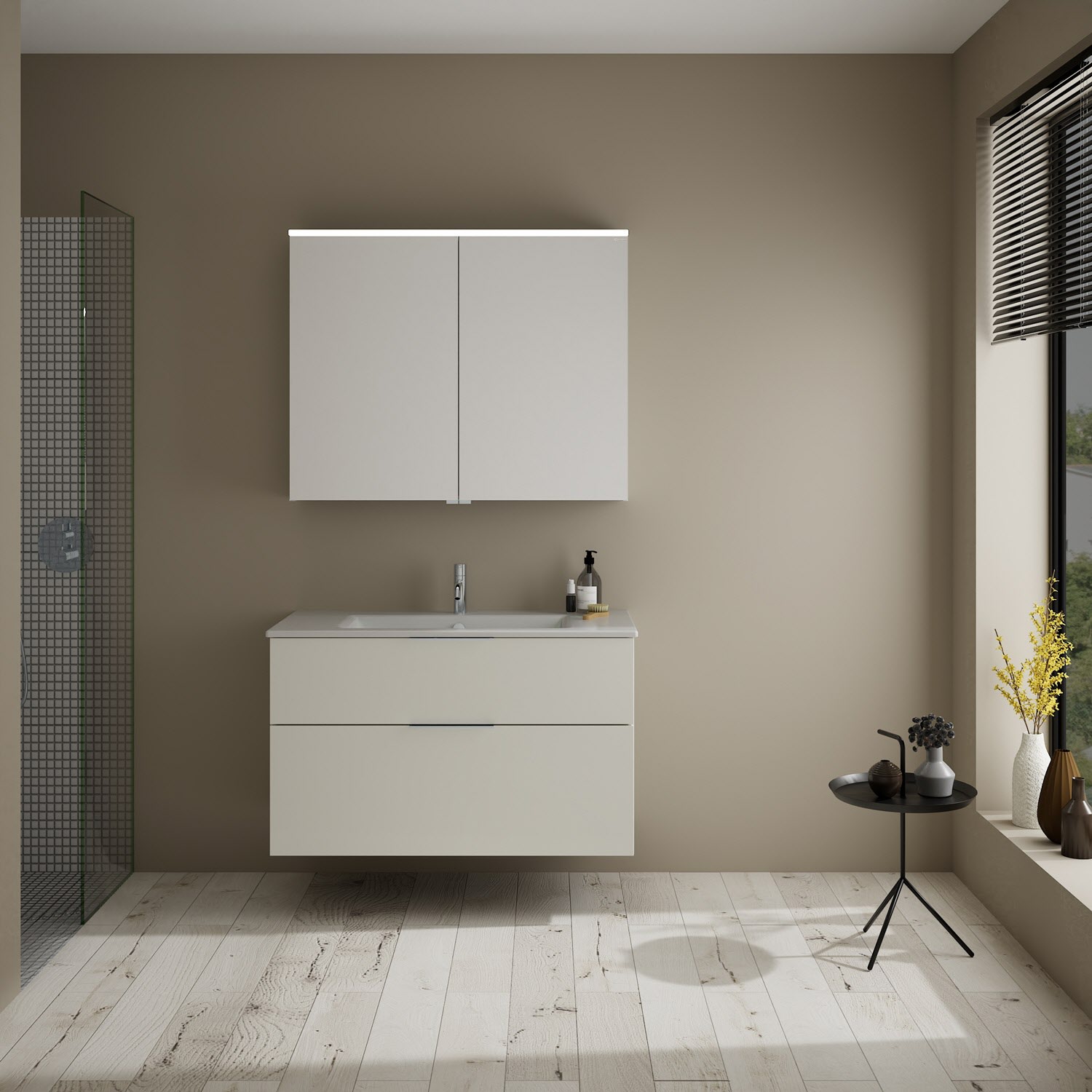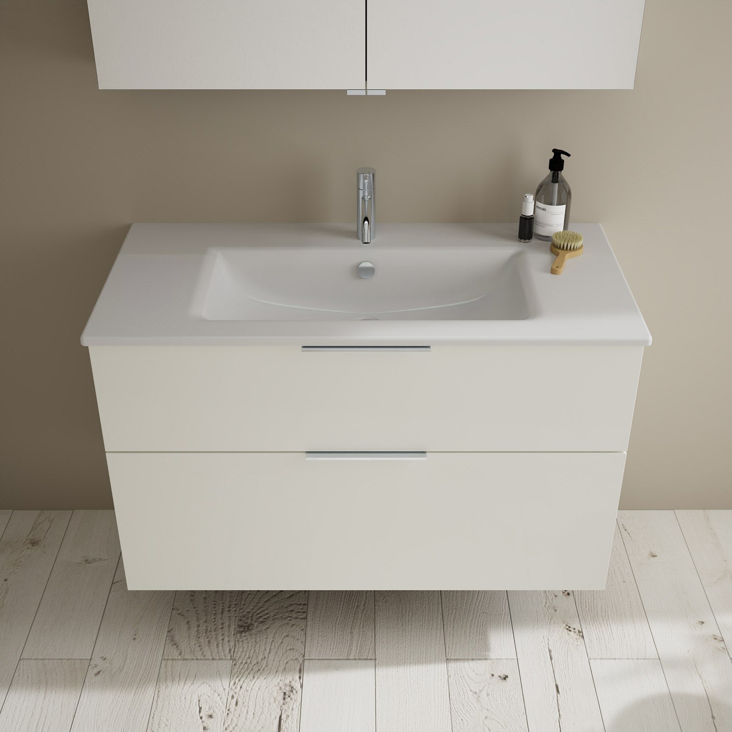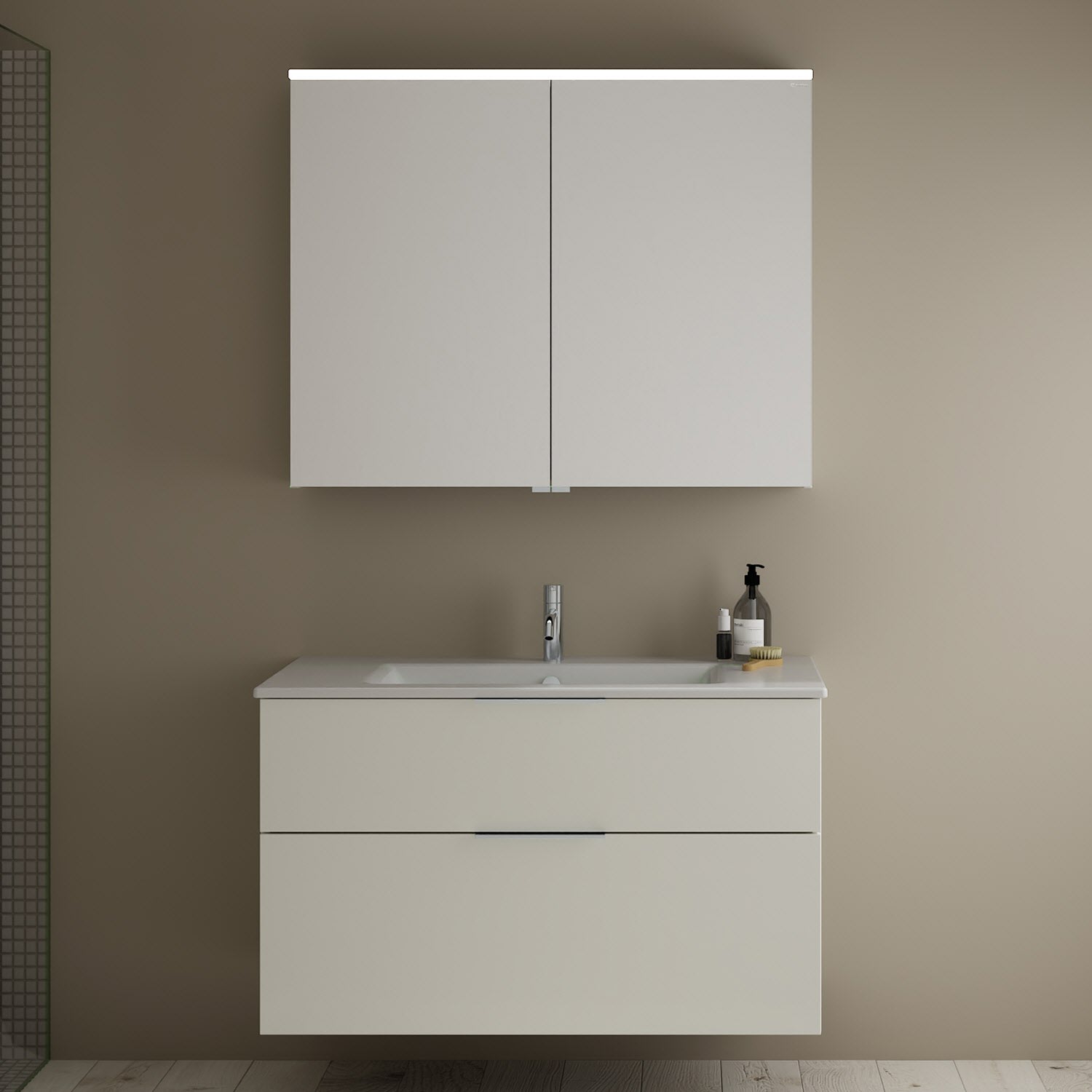 burgbad Eqio Badmöbel-Set 102 cm mit Keramik-Waschtisch Slim und Unterschrank mit Griff G0146, mit Spiegelschrank
