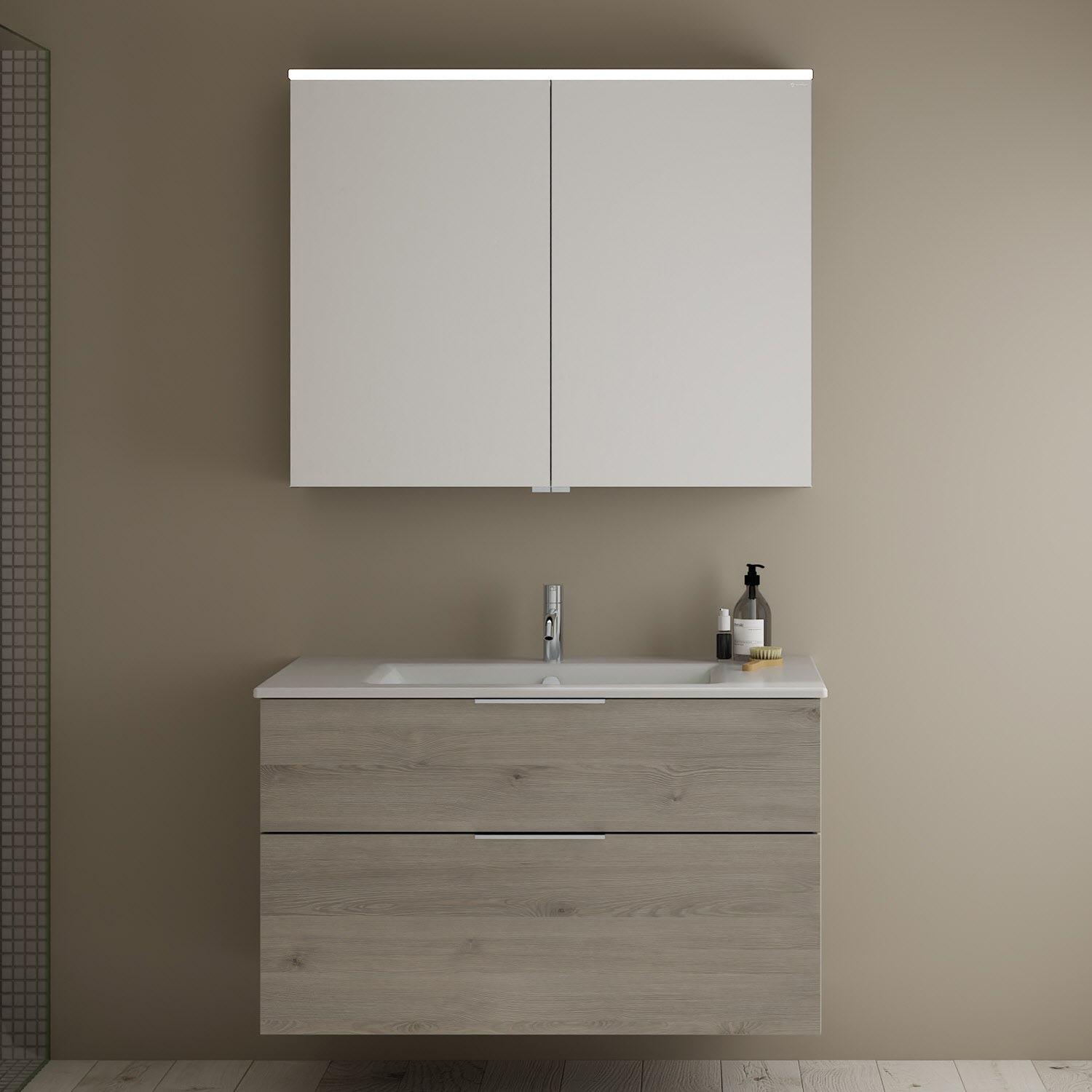 burgbad Eqio Badmöbel-Set 102 cm mit Keramik-Waschtisch Slim und Unterschrank mit Griff G0146, mit Spiegelschrank