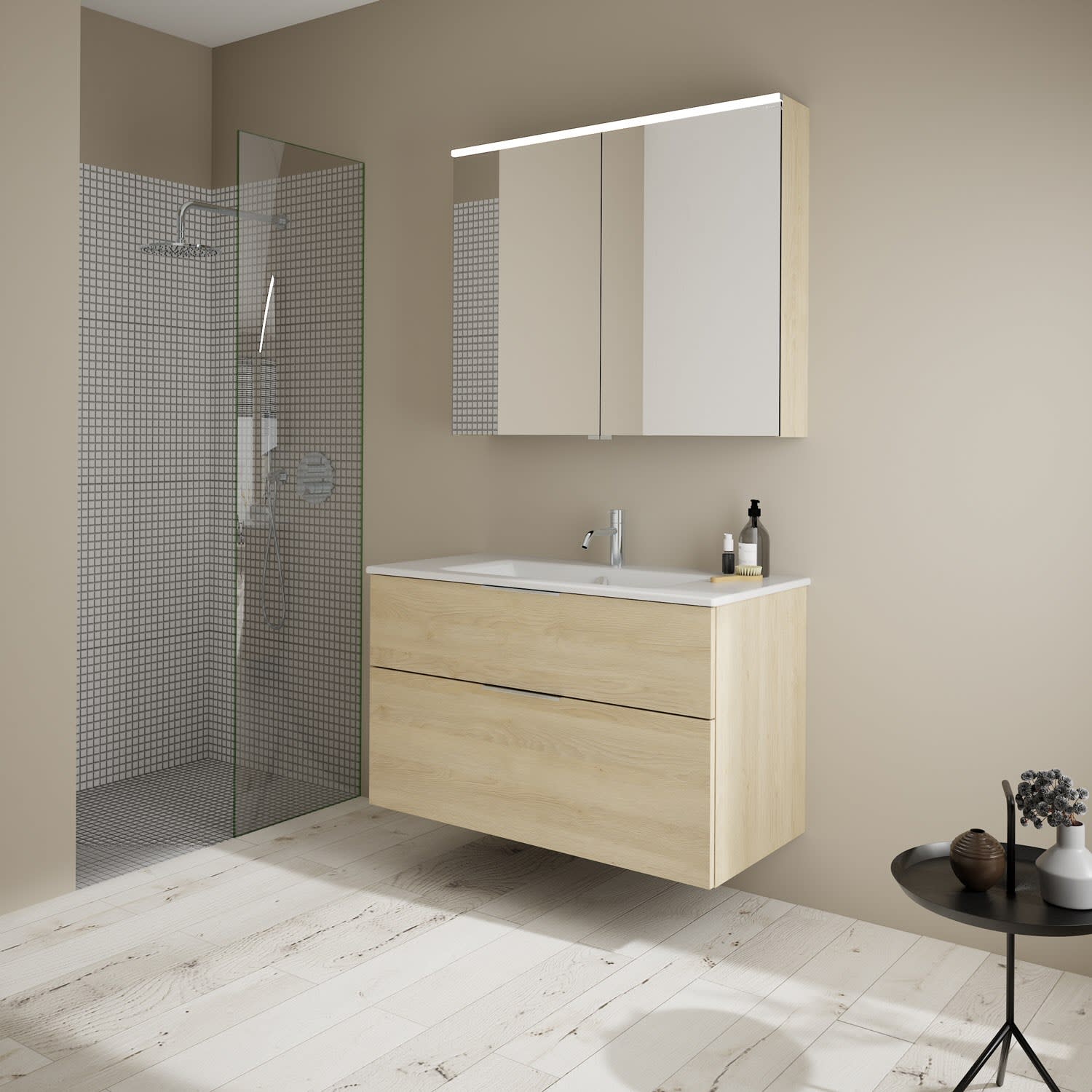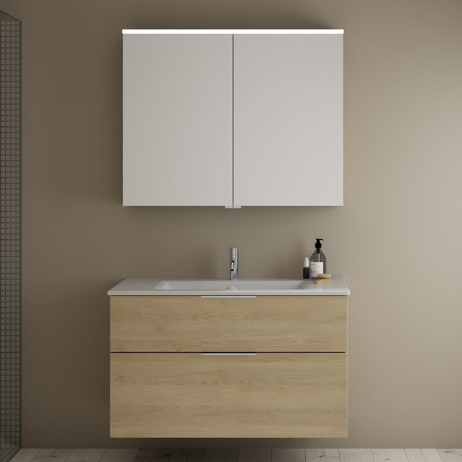 burgbad Eqio Badmöbel-Set 102 cm mit Keramik-Waschtisch Slim und Unterschrank mit Griff G0146, mit Spiegelschrank