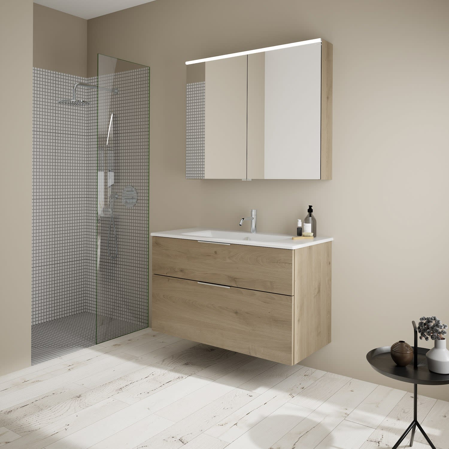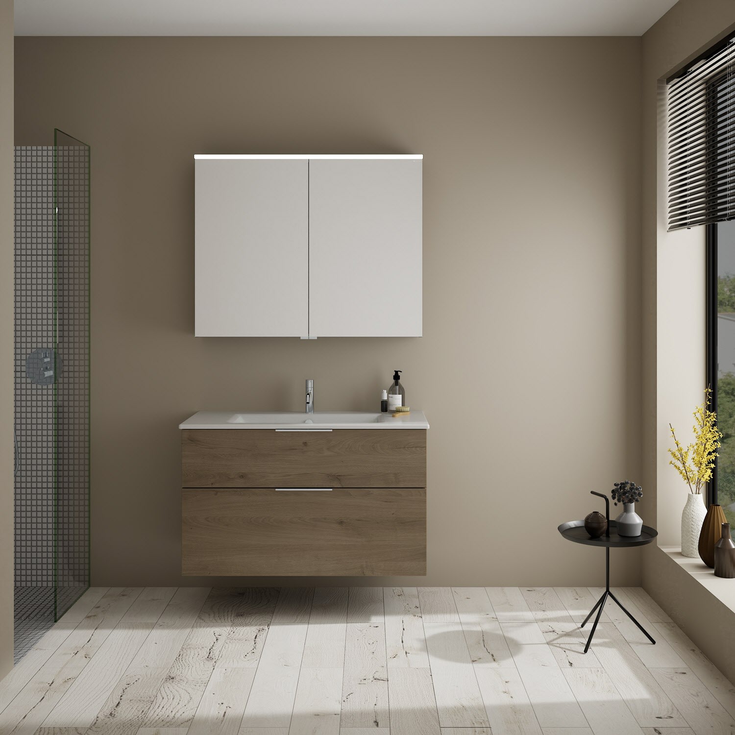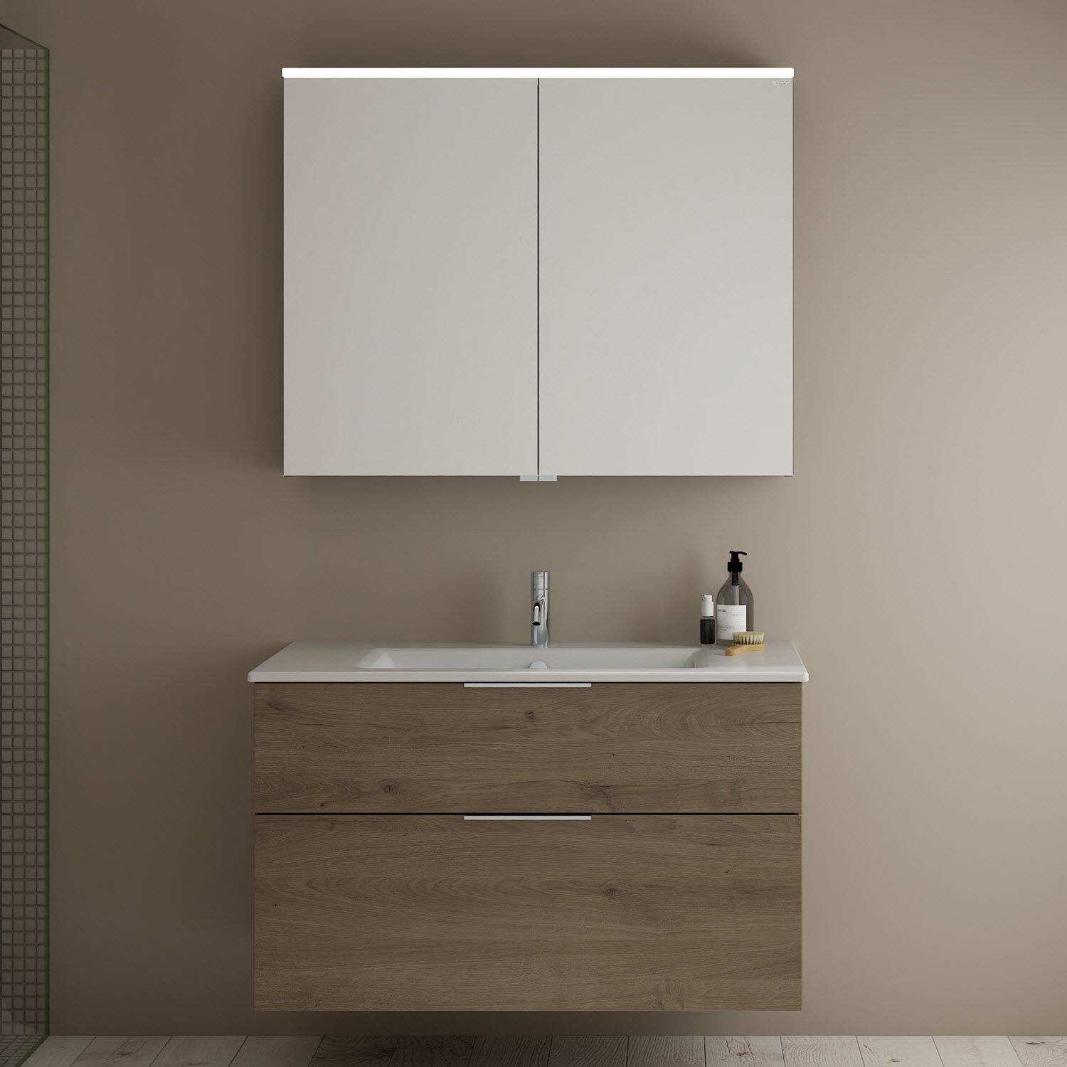 burgbad Eqio Badmöbel-Set 102 cm mit Keramik-Waschtisch Slim und Unterschrank mit Griff G0146, mit Spiegelschrank